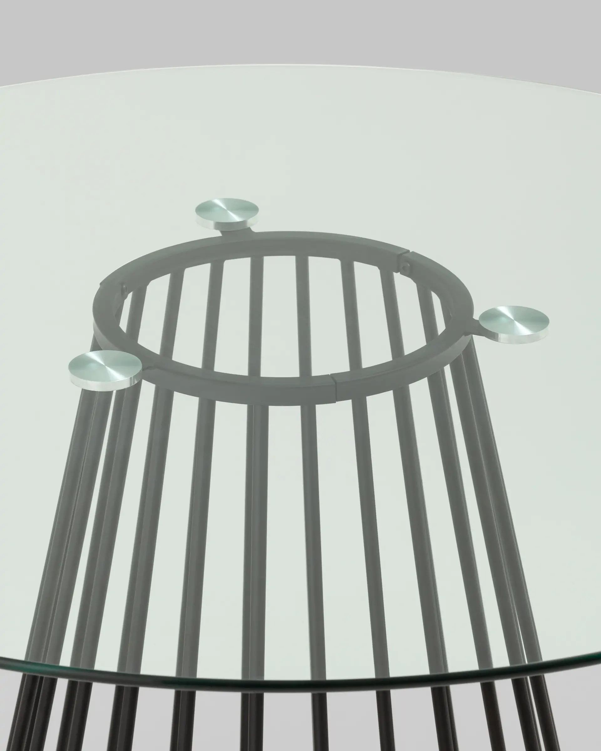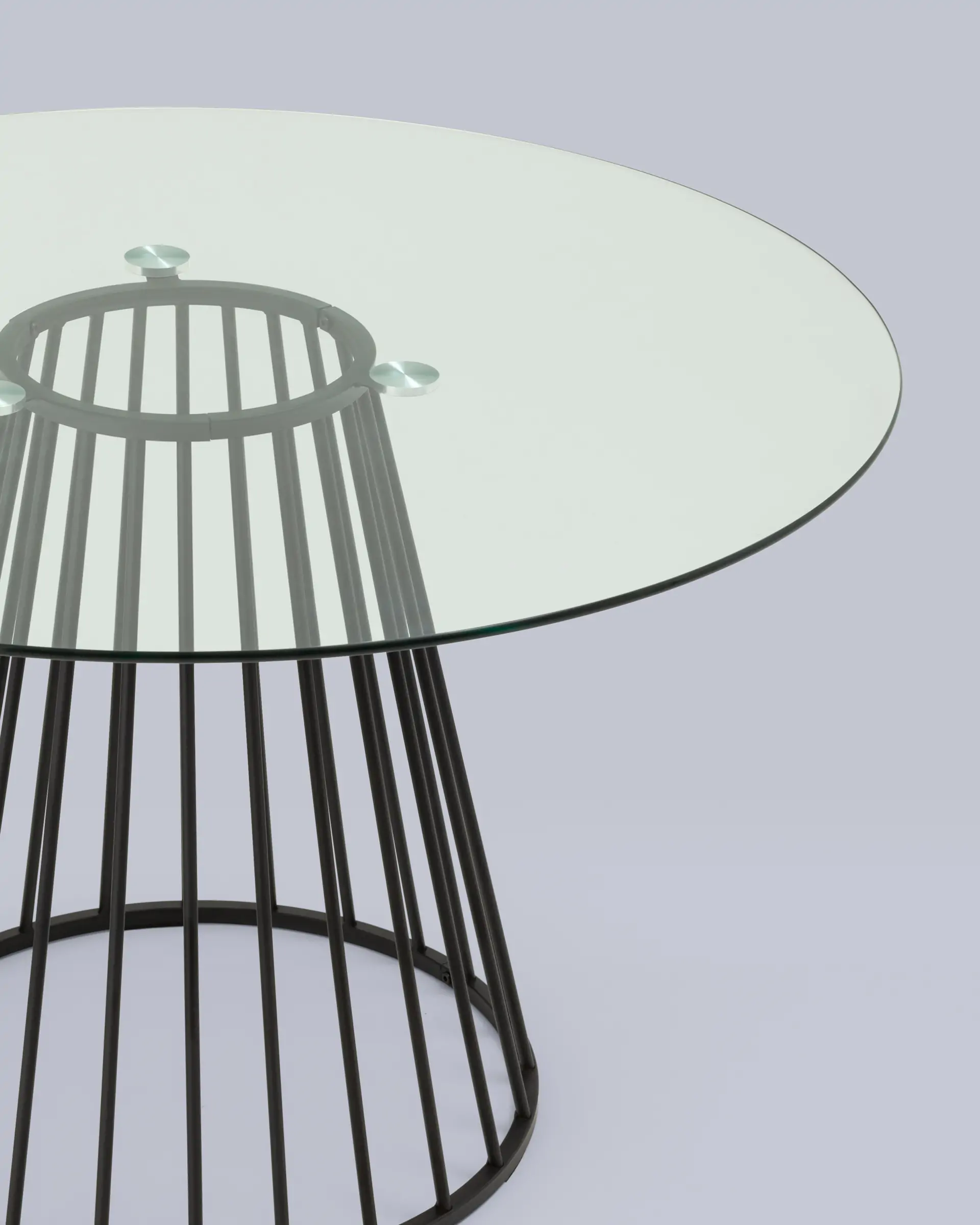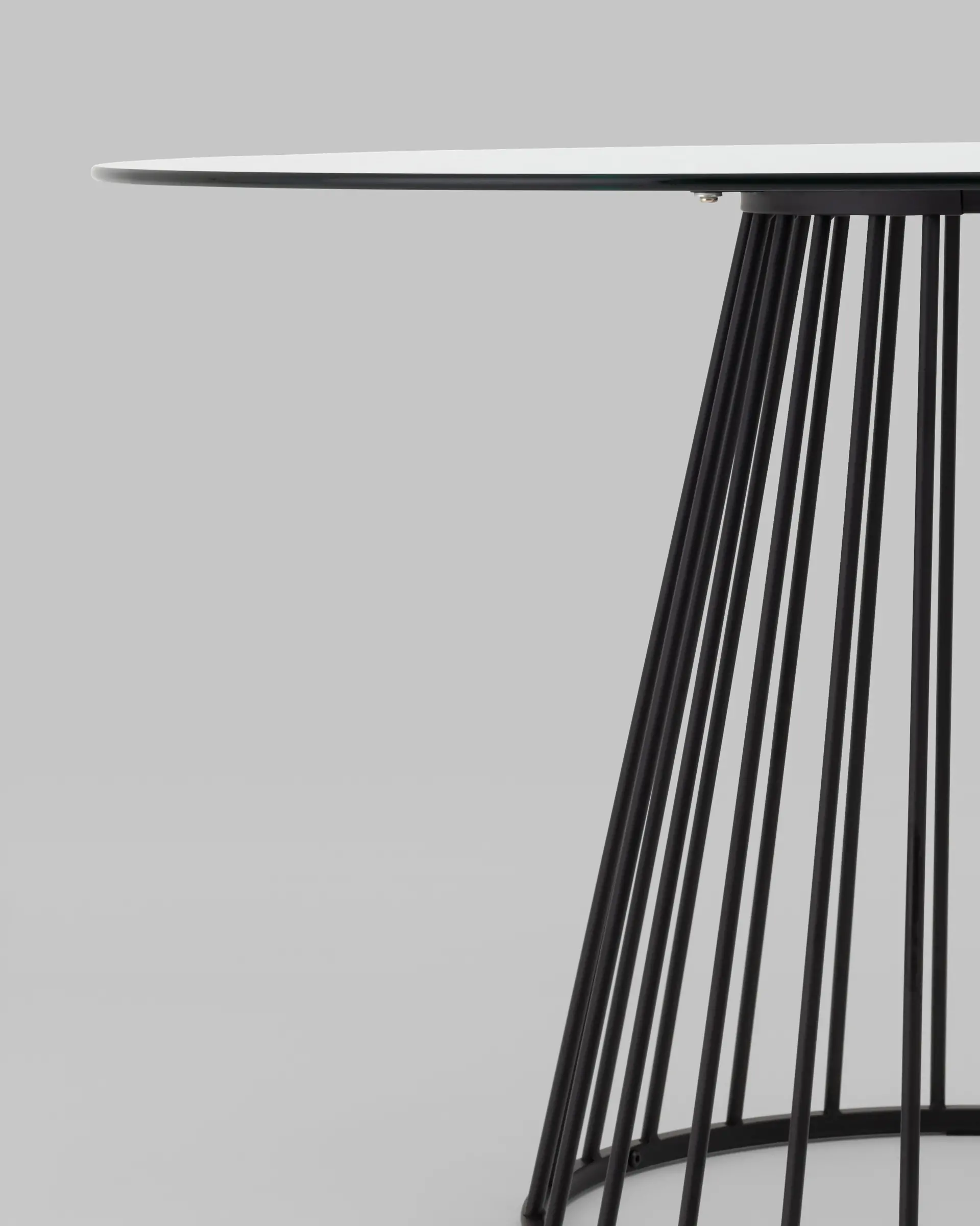 Стильный стол с металлическим основанием. Круглая столешница выполнена из прочного закаленного стекла. Она идеально сочетается с металлическим основанием. Защитные подпятники в основании предотвращают повреждения напольного покрытия.