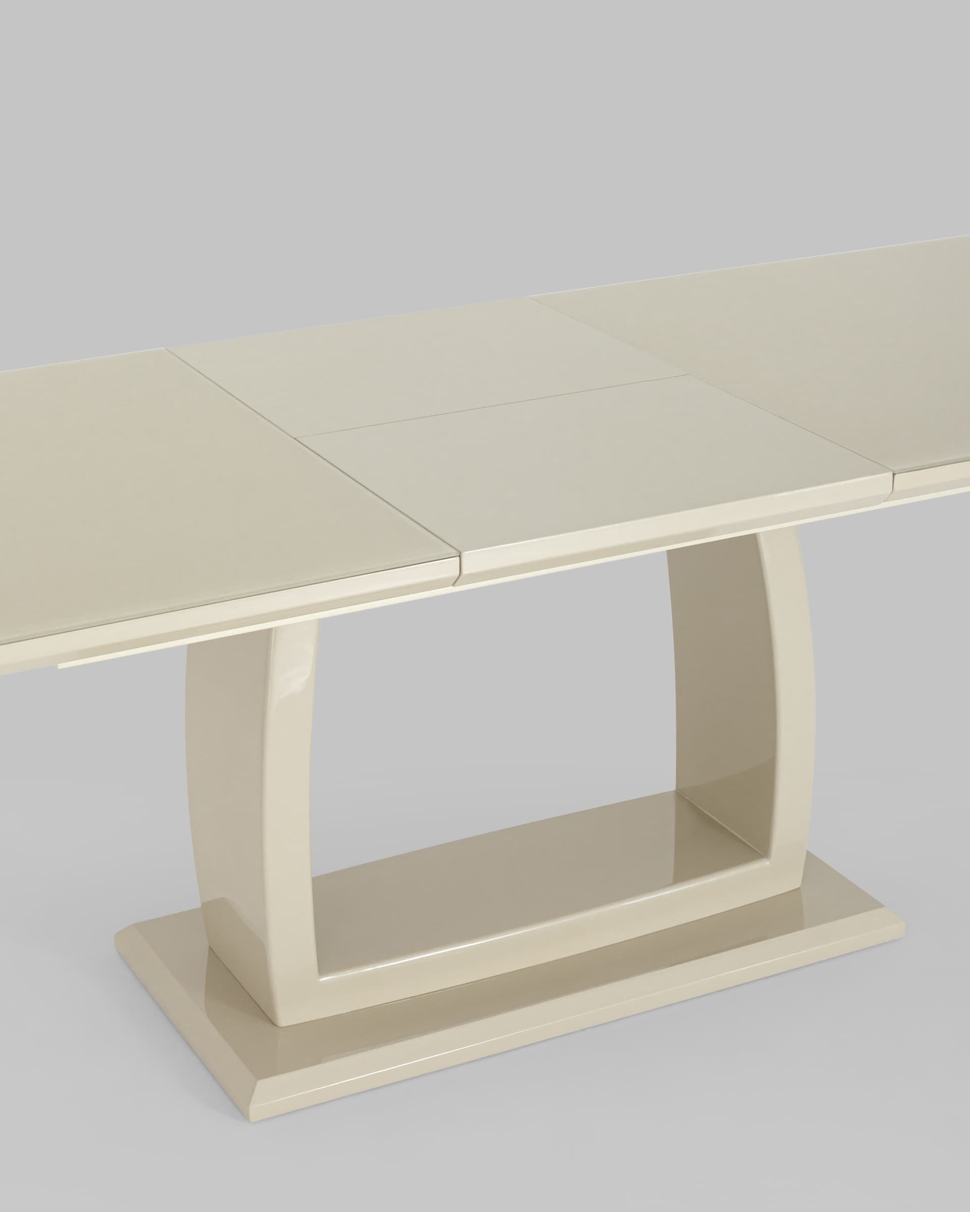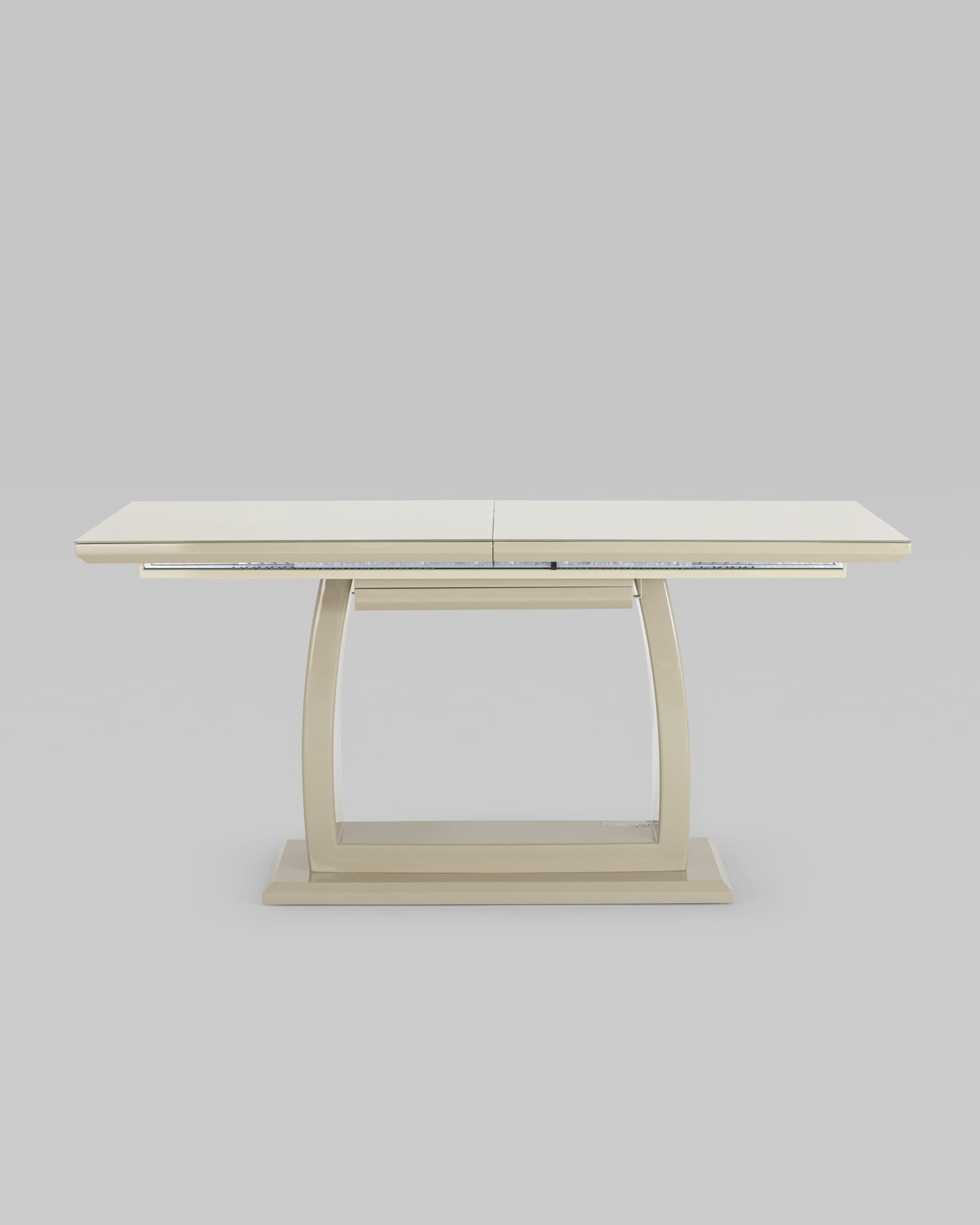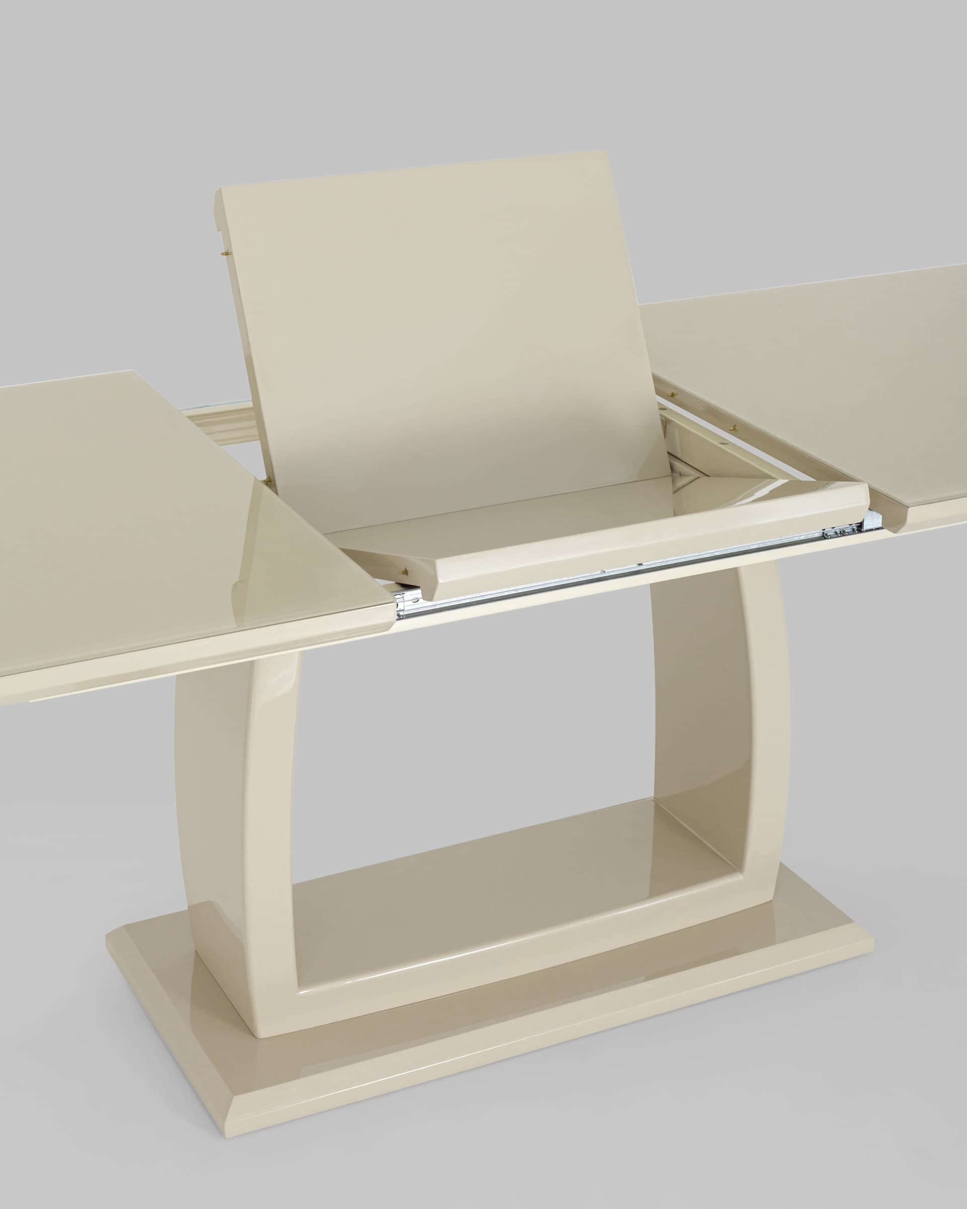 Обеденный стол бежевый с раскладной столешницей. Материал столешницы: МДФ, стекло.
