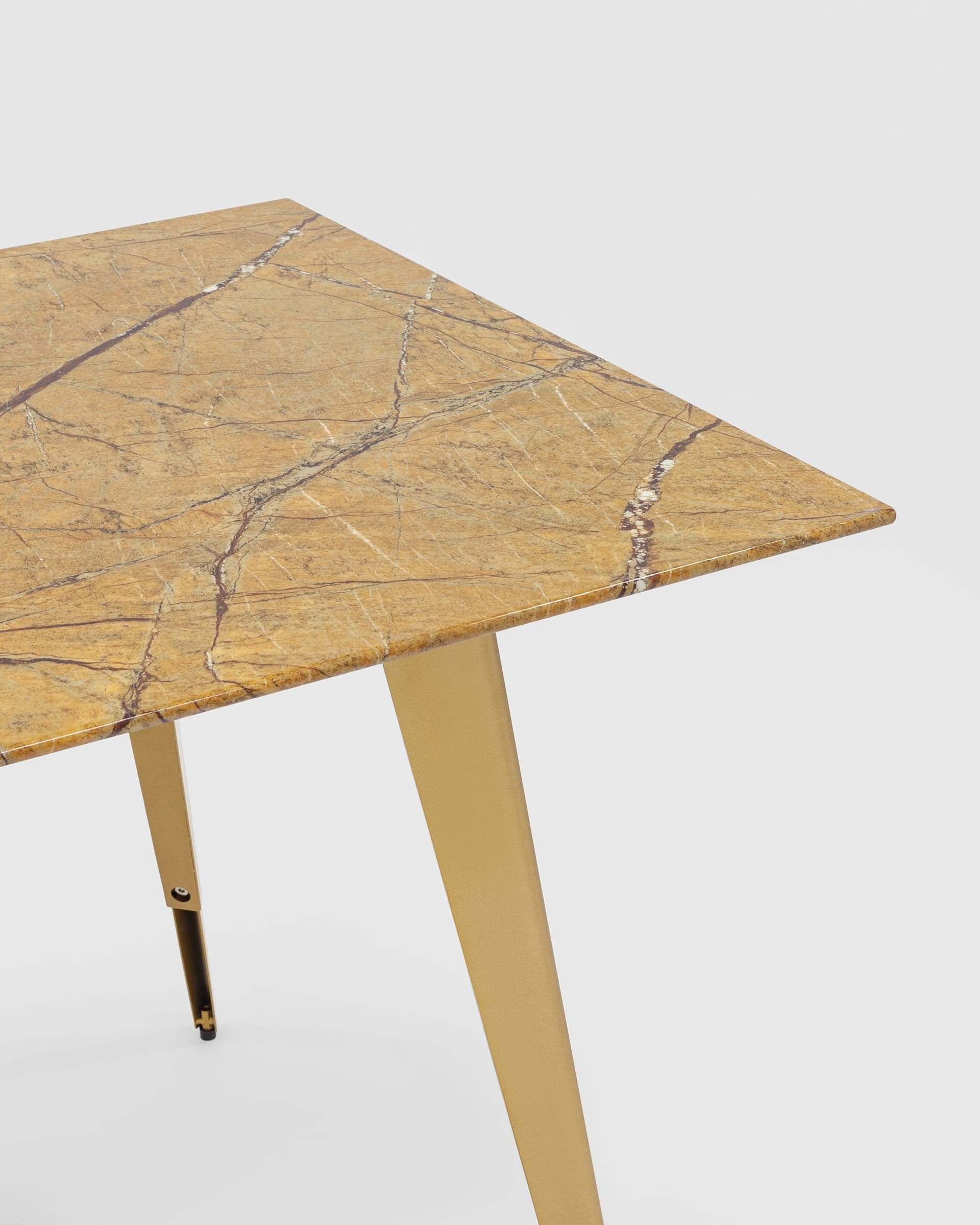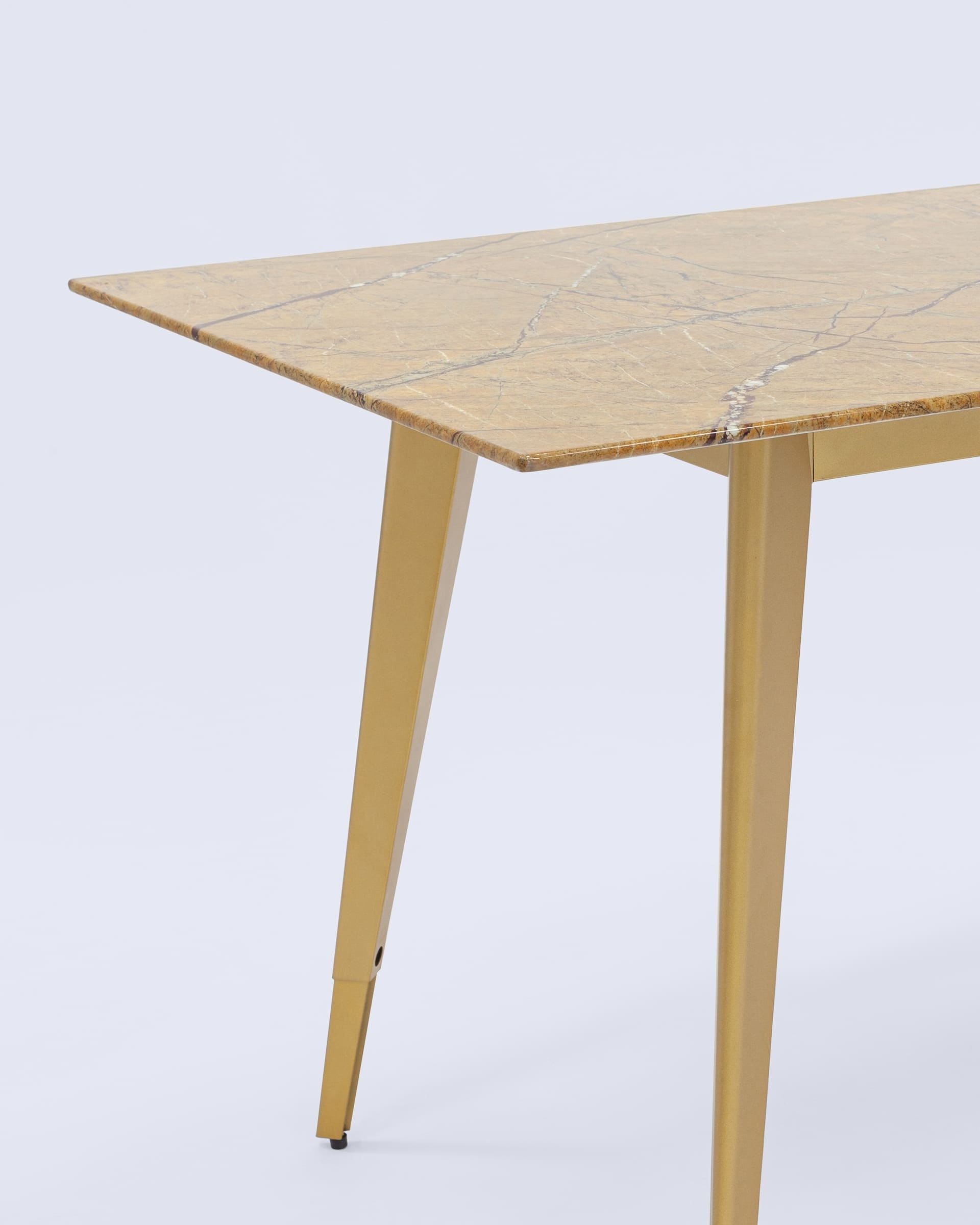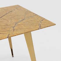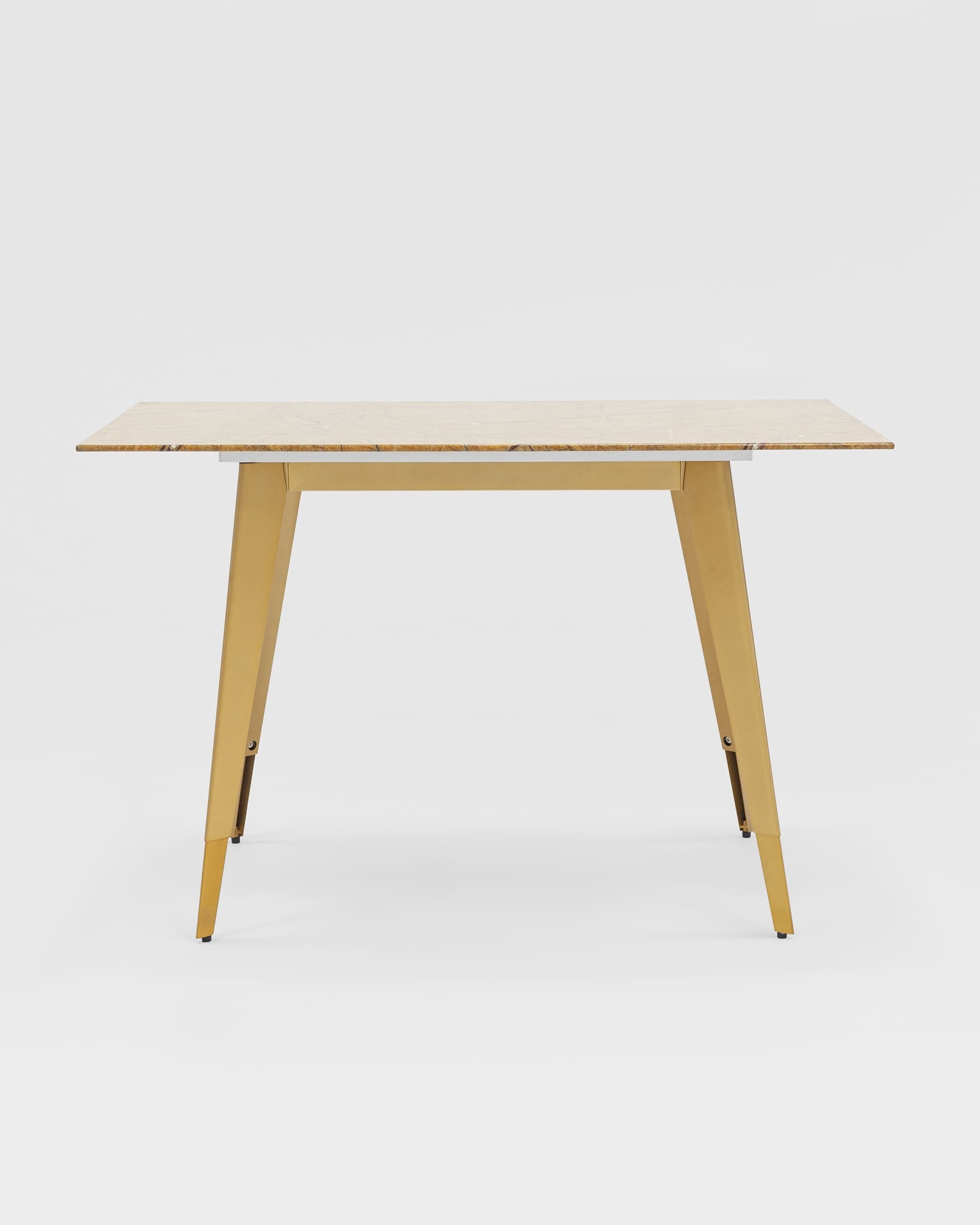 Красивая столешница гармонирует с геометричными ножками. Такое сочетание эффектно смотрится в любом интерьере.