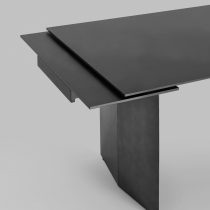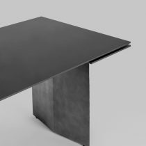 Массивный стол Селин в монохромном цвете с мраморным рисунком. Прямоугольная столешница выполнена из цельной керамики – долговечный и прочный материал устойчивый к внешним воздействиям. При необходимости длину стола можно увеличить на 40 или 80 см за счет спрятанных по бокам раздвижных элементов. Раздвижной механизм прост в использовании и не требует много времени для сборки. Металлические опорные ножки в лаконичном дизайне надёжно удерживают всю конструкцию и дополняют монолитный образ. Данная модель подчеркнет стиль кухни или гостиной в современном дизайне.