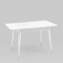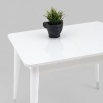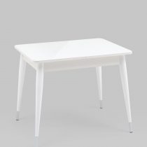 Прямоугольная столешница изготовлена из ЛДСП и покрыта слоем глянцевого стекла. Покрытие очень простое в уходе, не впитывает жидкость и устойчивое к перепадам температуры. Круглые ножки из массива дерева в основании декорированы металлической вставкой для практичности и эстетики. Черные подпятники защищают напольное покрытие от царапин и препятствуют скольжению.
