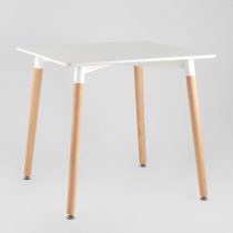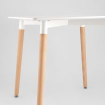 Стол изготовлен из высококачественного материала столешницей белого цвета из МДФ.Четыре ножки изготовлены из массива светлого бука.