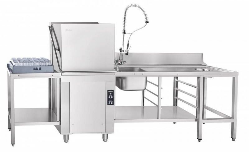 - Предмоечный стол Abat СПМП-6-7 с раковиной, отверстием для сбора отходов и направляющими для кассет;