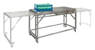Столешница стола изготовлена из шлифованной нержавеющей стали. Каркас выполнен из стального уголка с полимерно-порошковым покрытием. Полка – сплошная из стали с полимерно-порошковым покрытием.