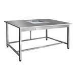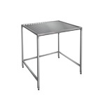 Столешница стола изготовлена из шлифованной нержавеющей стали. Каркас выполнен из стального уголка с полимерно-порошковым покрытием. Полка – сплошная из стали с полимерно-порошковым покрытием.