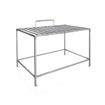 Столешница стола изготовлена из шлифованной нержавеющей стали. Каркас выполнен из уголка из оцинкованной стали. Полка – сплошная из оцинкованной стали.