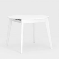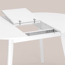 Ножки выполнены из массива бука, покрашены в белый цвет. Дополнительная вставка в цвет столешницы. Стол легко разложить, механизм раскрытия “бабочка”.
