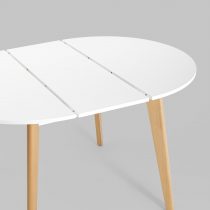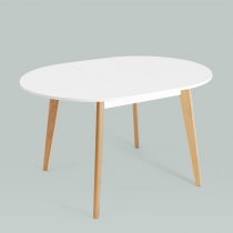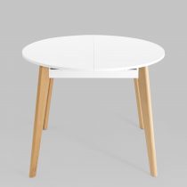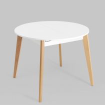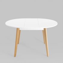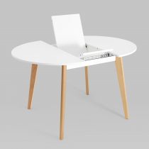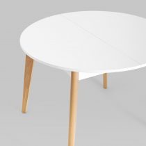 Ножки выполнены из массива бука, покрашены в белый цвет. Дополнительная вставка в цвет столешницы. Стол легко разложить, механизм раскрытия “бабочка”.
