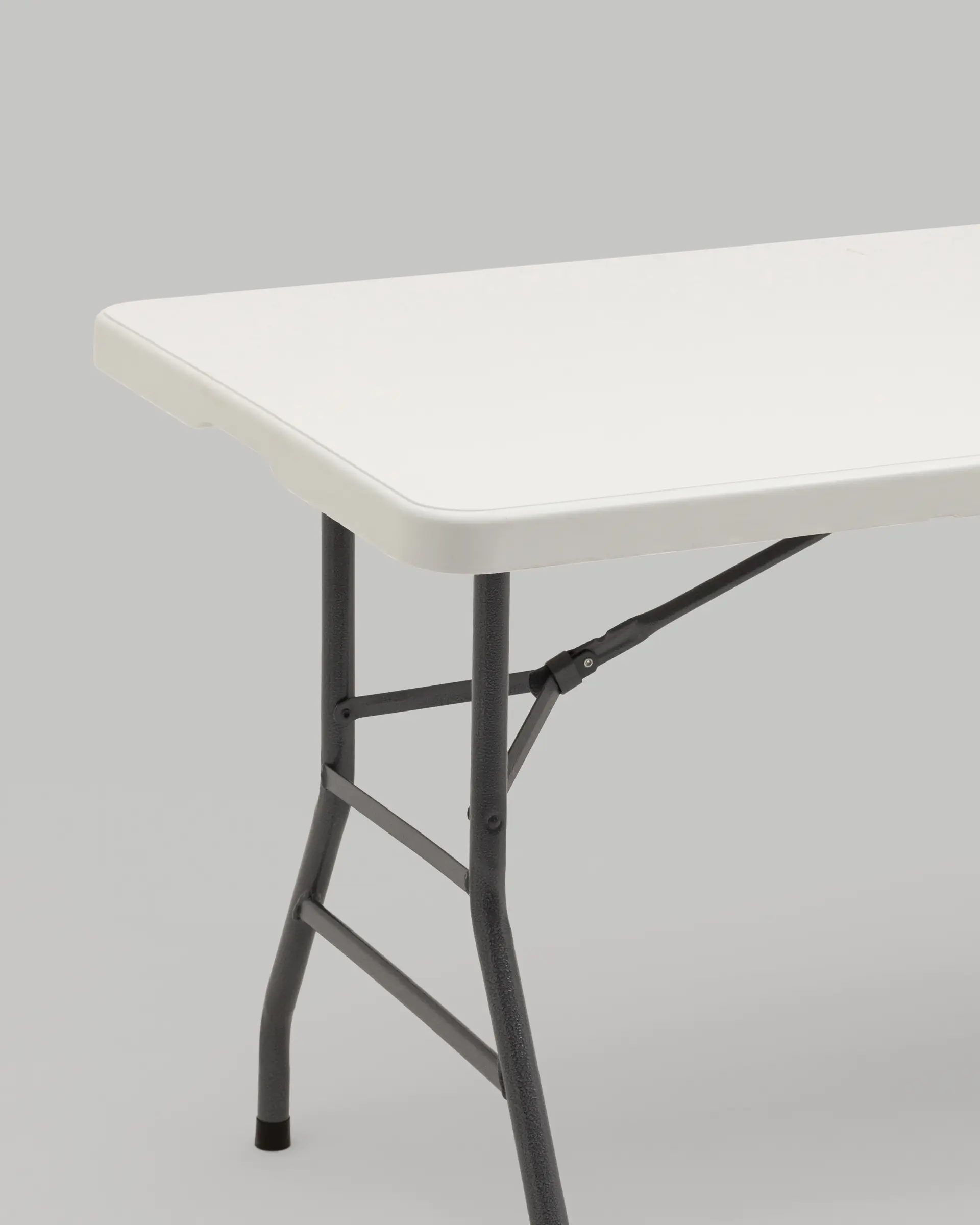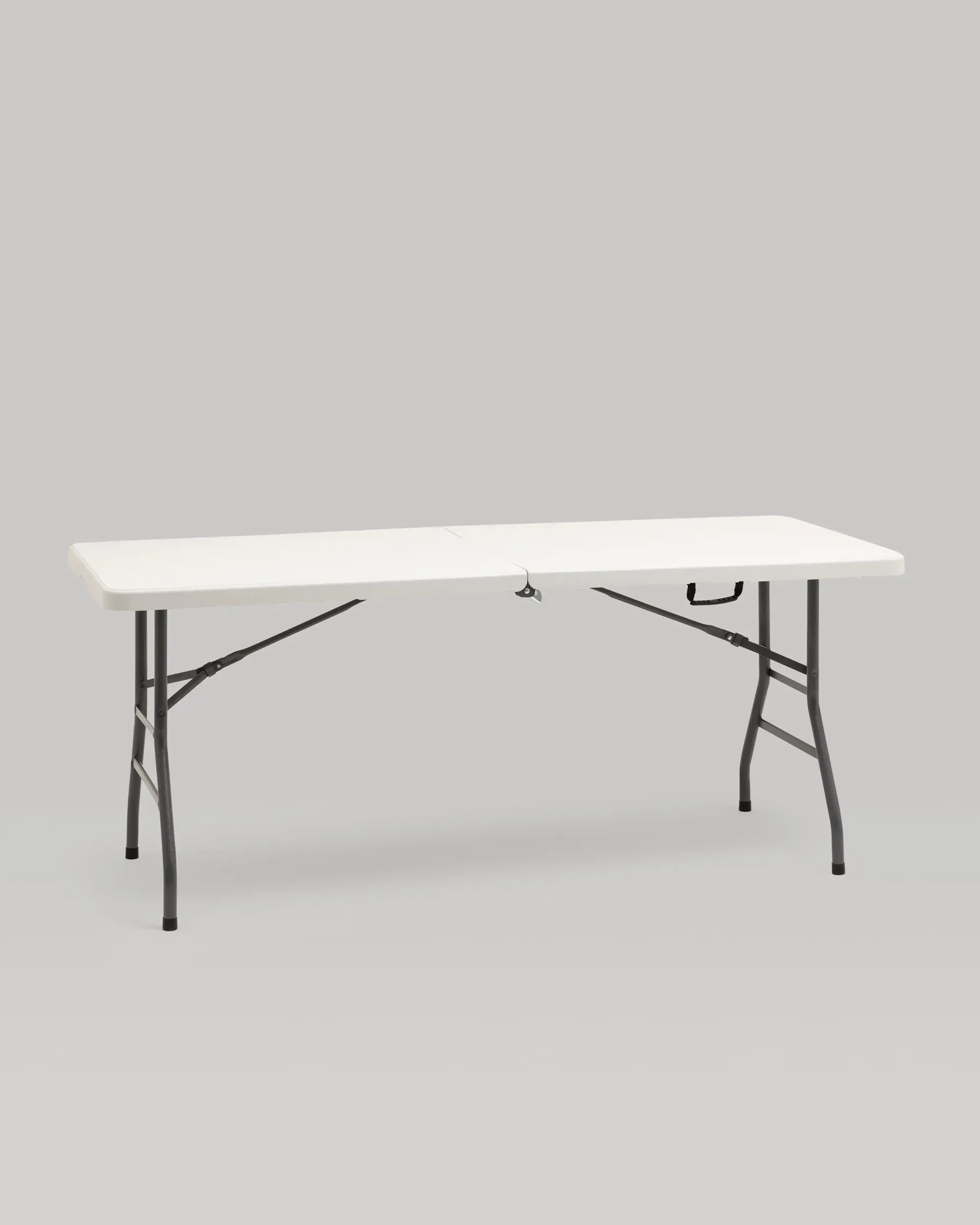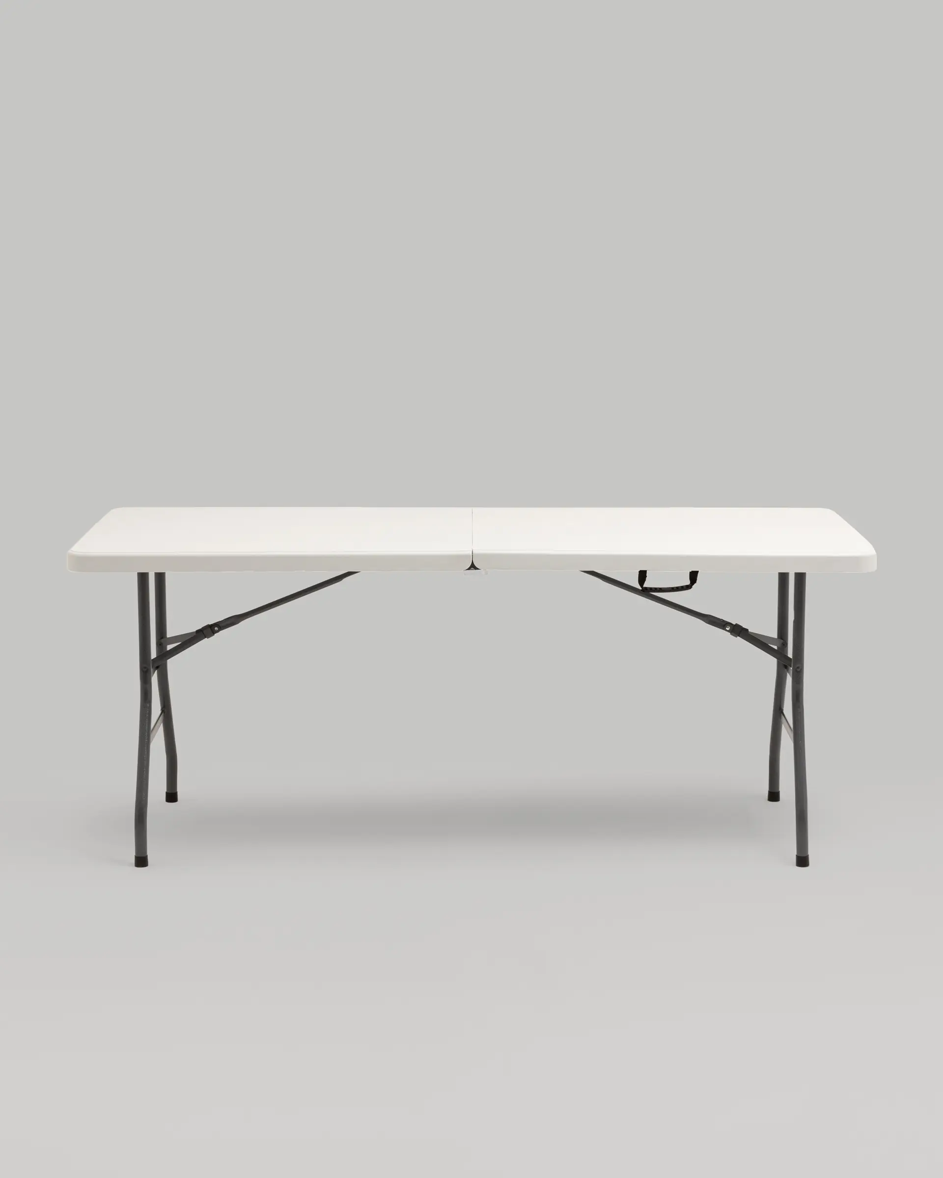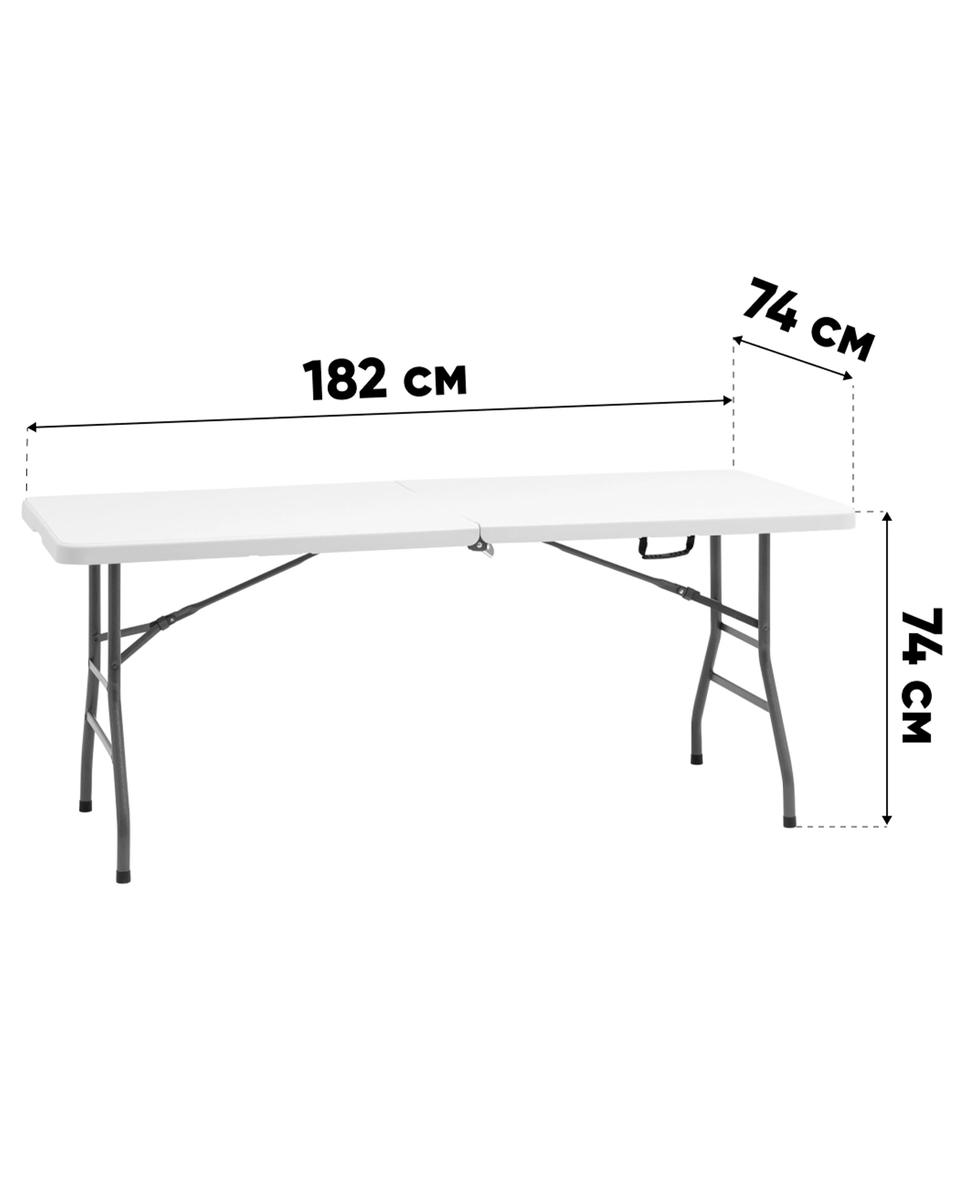 В числе преимуществ, которыми обладает этот складной пластиковый стол-книжка, можно назвать выверенные параметры, легкость, прочность и эргономичность конструкции. При длине стола 182 сантиметра, ширине в 74 см и такой же высоте за ним могут разместиться до 14 человек. Благодаря этому стол можно использовать как для выездных деловых и праздничных мероприятий, так и в личных целях на собственной даче или в загородном доме. При этом вес модели – всего 13 кг, что позволяет без проблем загрузить его в автомобиль или перевезти в одиночку.