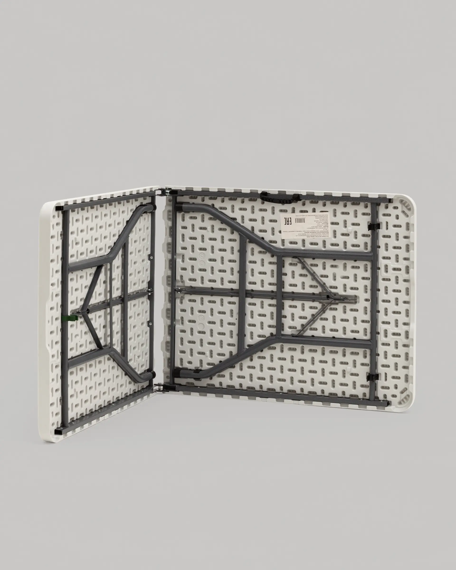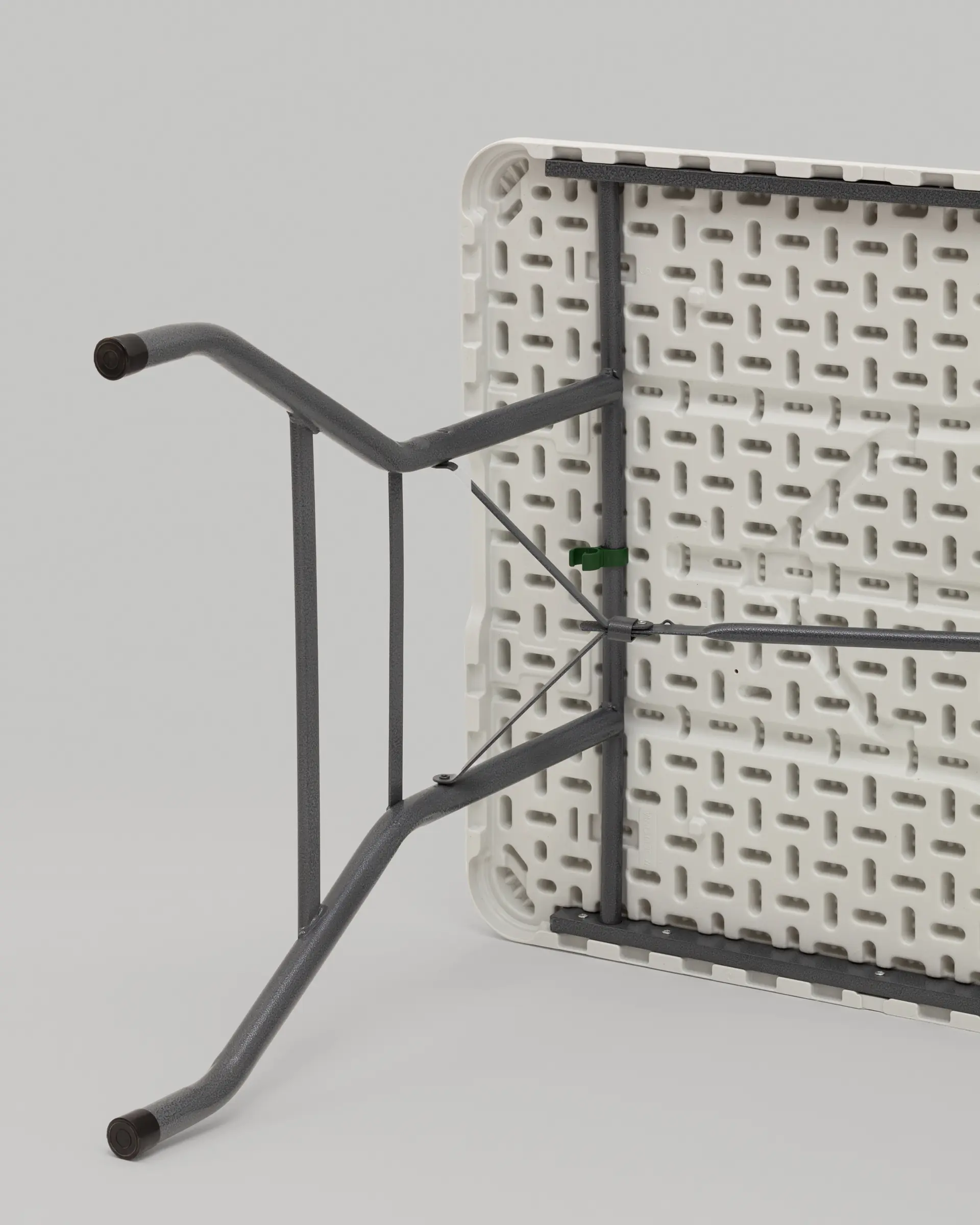 Для каркаса используется стальная труба особой прочности, а столешница выполнена из 100% не переработанного полиэтилена HDPE (полиэтилен высокой плотности). Считается одним из более безопасных видов пластика. HDPE пластик выдерживает высокие нагрузки, не трескается при ударной нагрузке, эластичен в диапазоне температур от –70 до +100 °С.