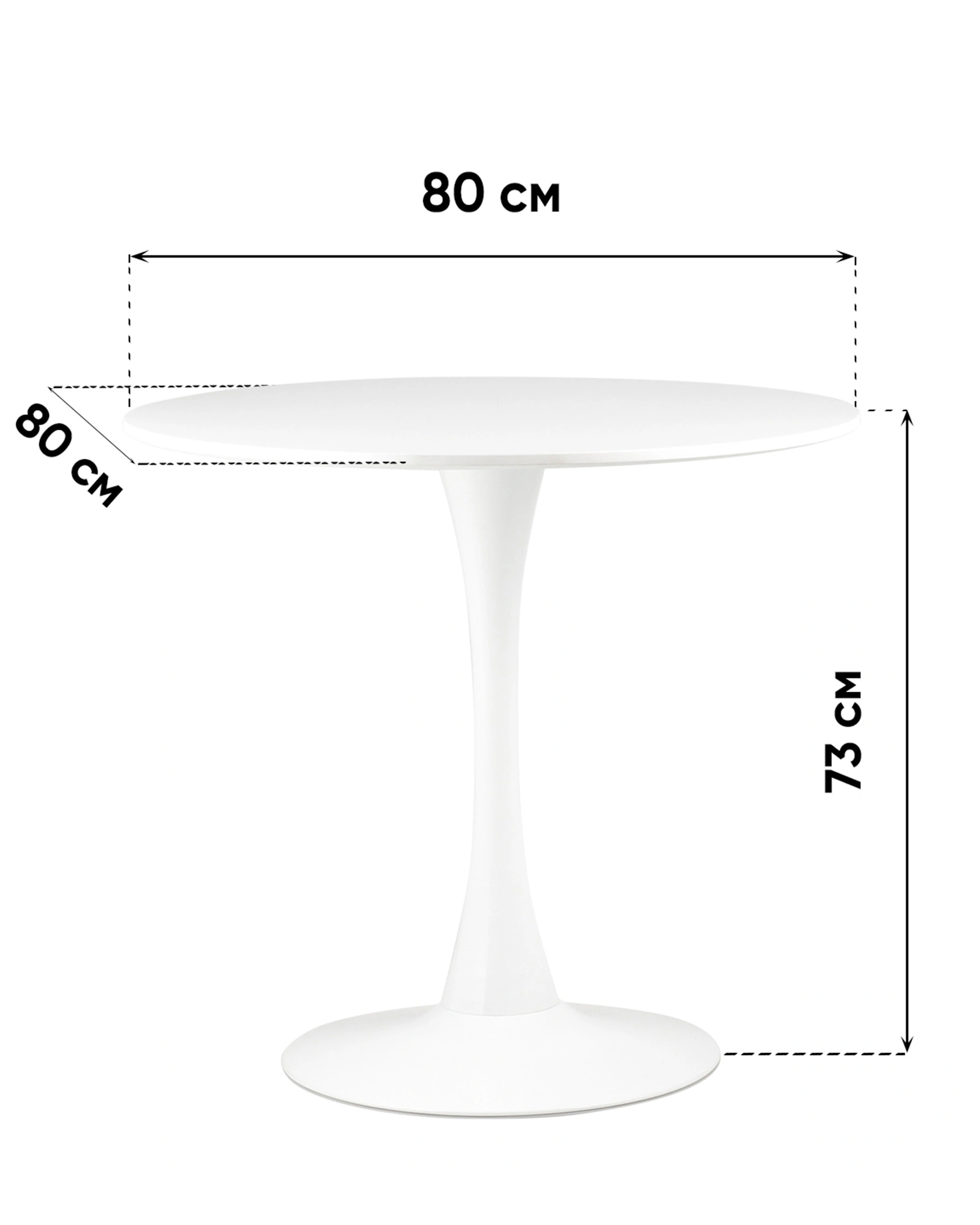 Стильная ножка изготовлена из металла, диаметр столешницы 80 см.