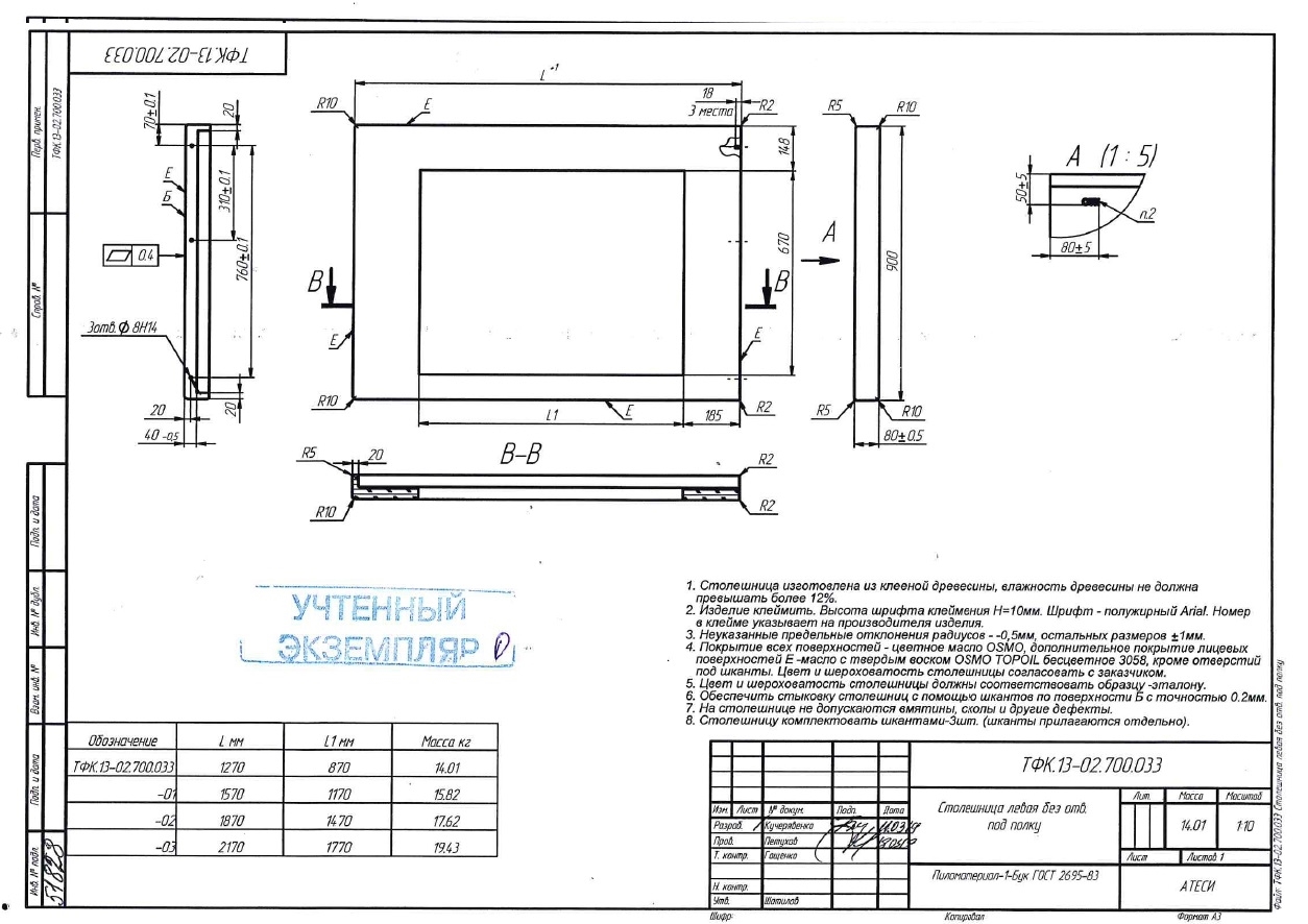- Модель: Столешница для М2, ОС, ГП, ОП Регата02 1570х900 левая (дерево) без отв. под полку