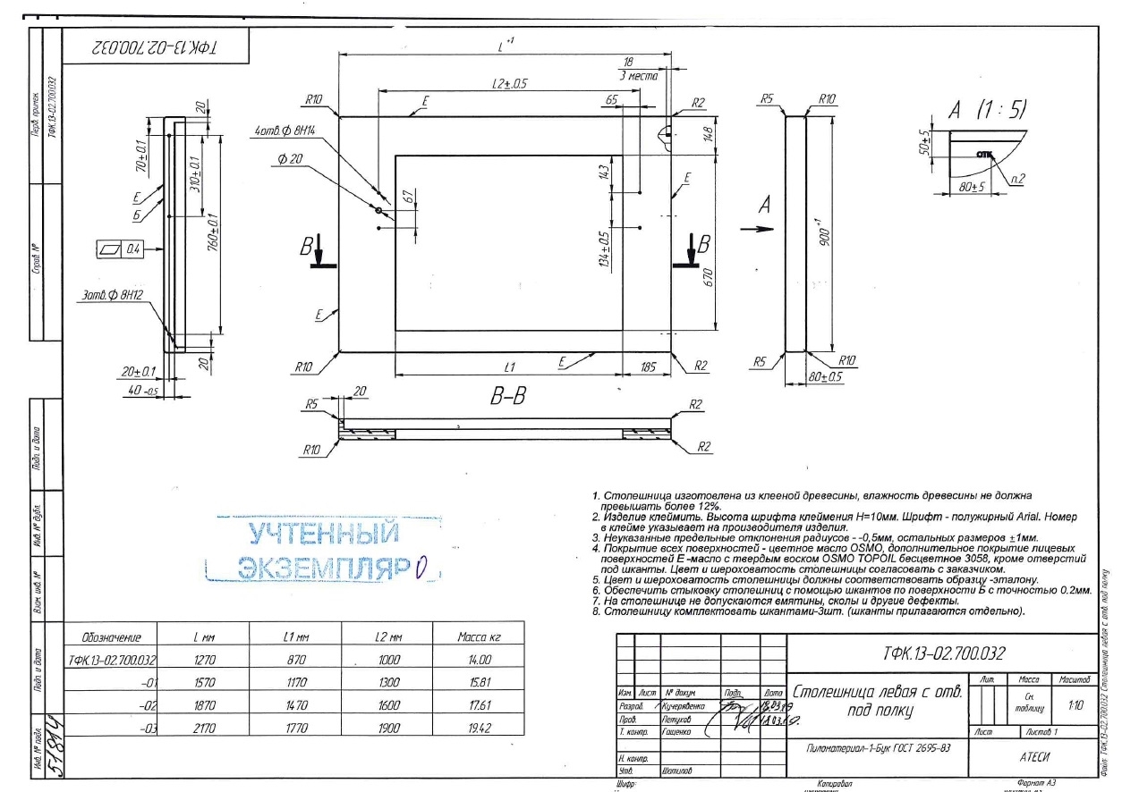 - Модель: Столешница для М2, ОС, ГП, ОП Регата02 1870х900 левая (дерево) с отв. под полку