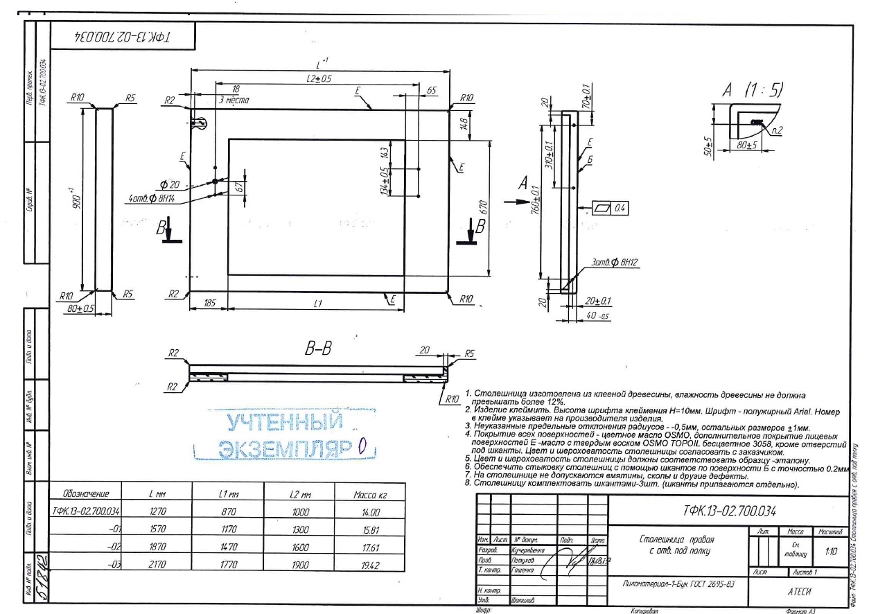 - Модель: Столешница для М2, ОС, ГП, ОП Регата02 1870х900 правая (дерево) с отв. под полку