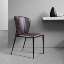 Изюминка стула Albert – невероятно тонкие металлические ножки черного матового цвета, излишне скошенные назад, как часть дизайнерской задумки. На ножках предусмотрены специальные пластиковые накладки, которые придают стулу дополнительную устойчивость и защищают полот царапин.