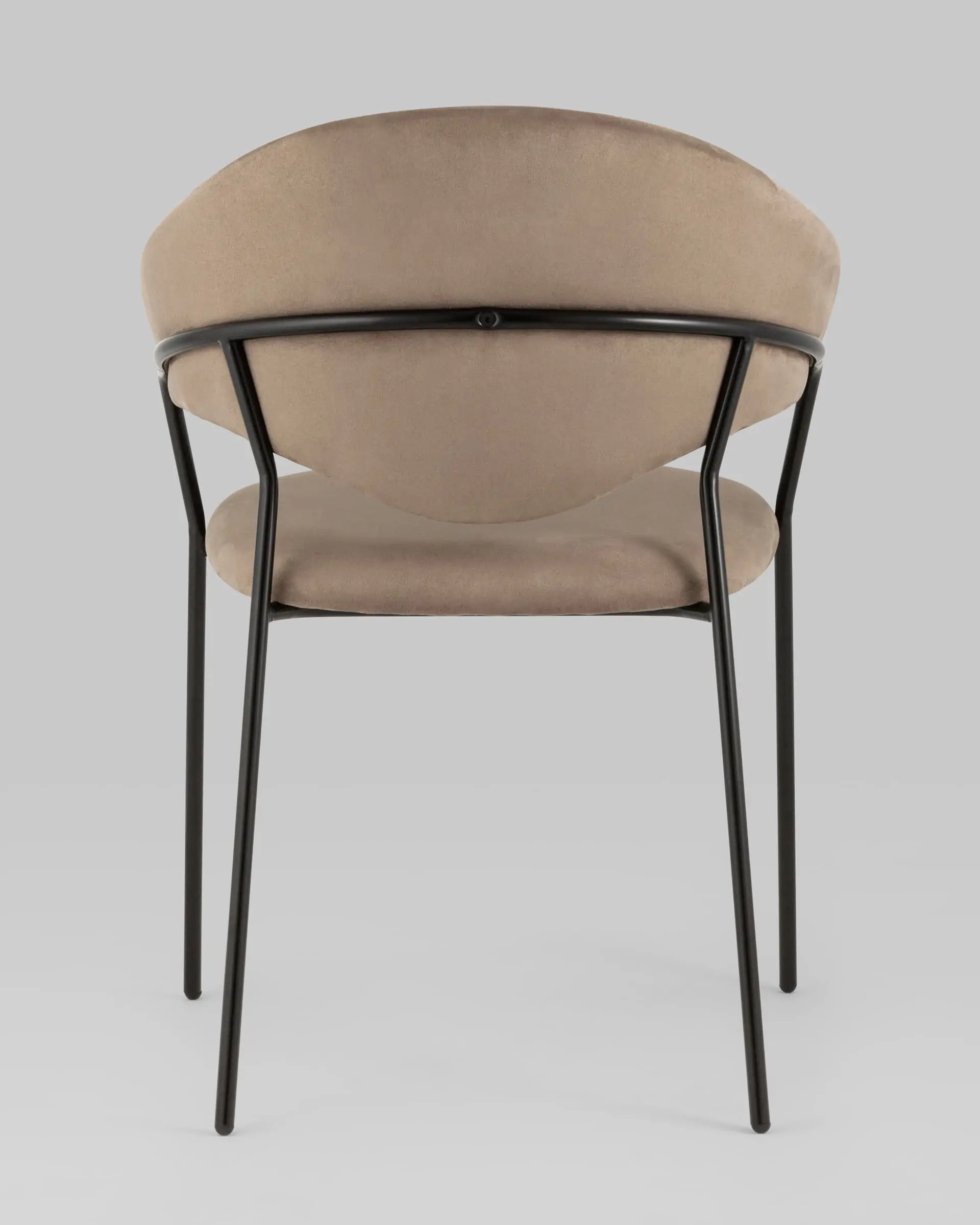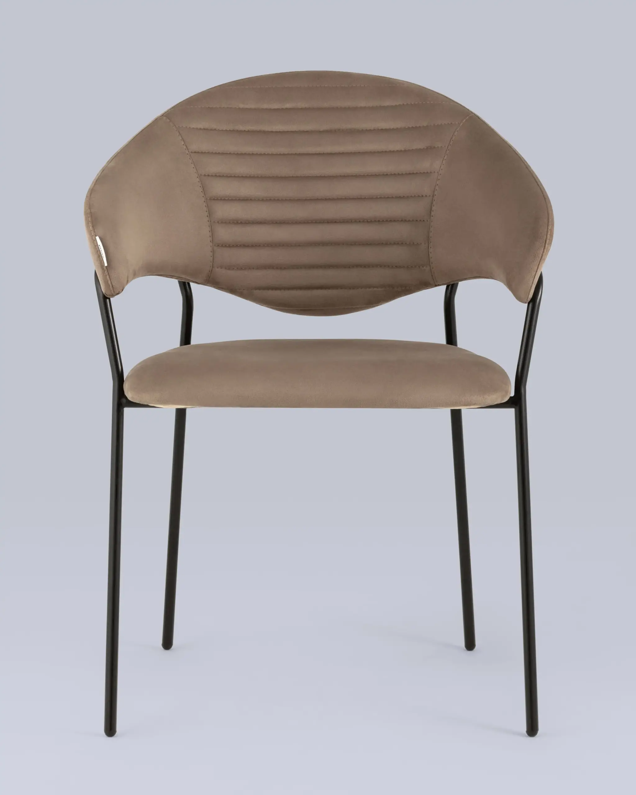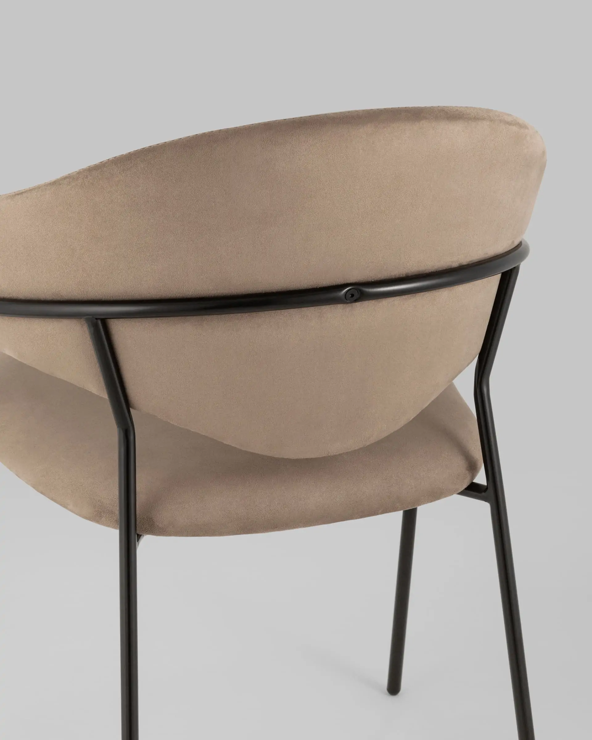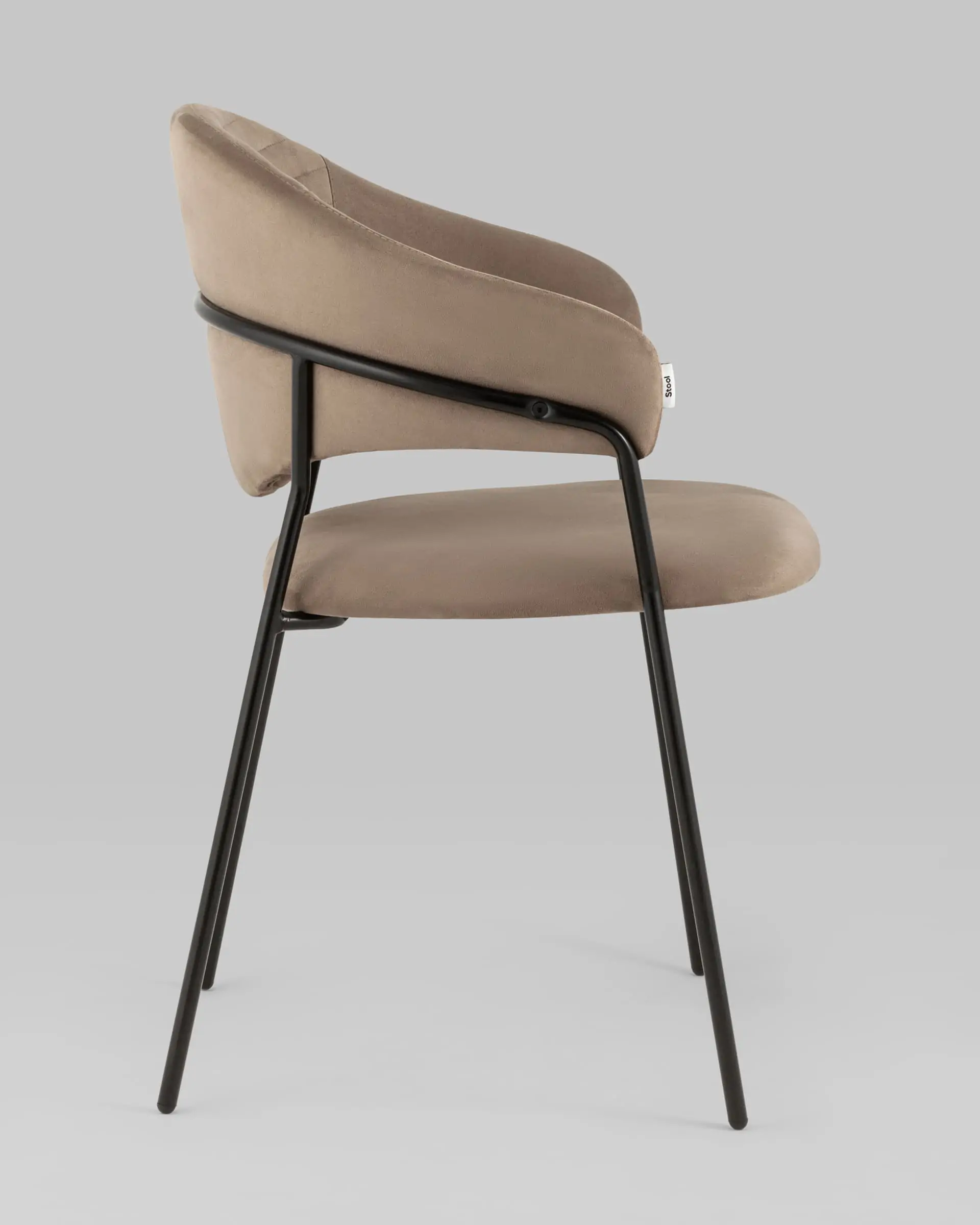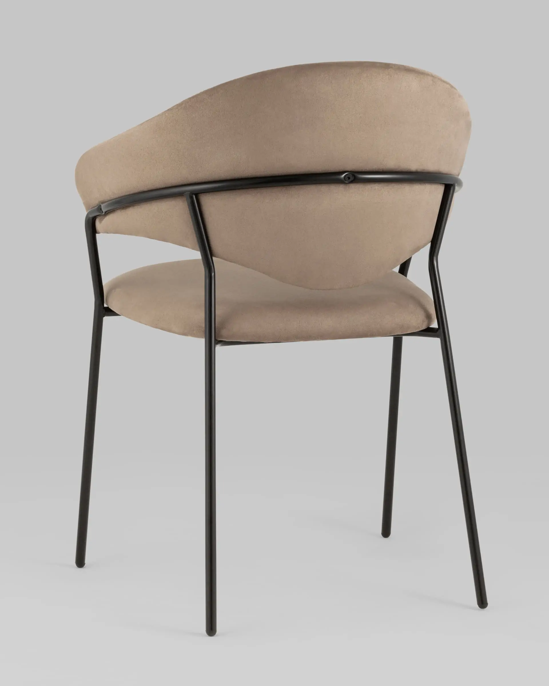 Стильный кухонный стул с оригинальной формой спинки, высокой поддержкой и подлокотниками. В качестве обивки используется мягкий велюр – приятный на ощупь износостойкий, гигроскопичный материал. Металлический каркас в черном цвете огибает спинку и выступает аккуратным акцентом модели. Широкое сиденье обеспечивает удобную посадку и уют.