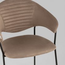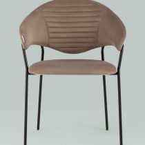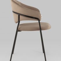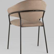 Стильный кухонный стул с оригинальной формой спинки, высокой поддержкой и подлокотниками. В качестве обивки используется искусственная замша – приятный на ощупь износостойкий, долговечный материал, обладает эффектом “антикоготь”. Металлический каркас в черном цвете огибает спинку и выступает аккуратным акцентом модели. Широкое сиденье обеспечивает удобную посадку и уют.