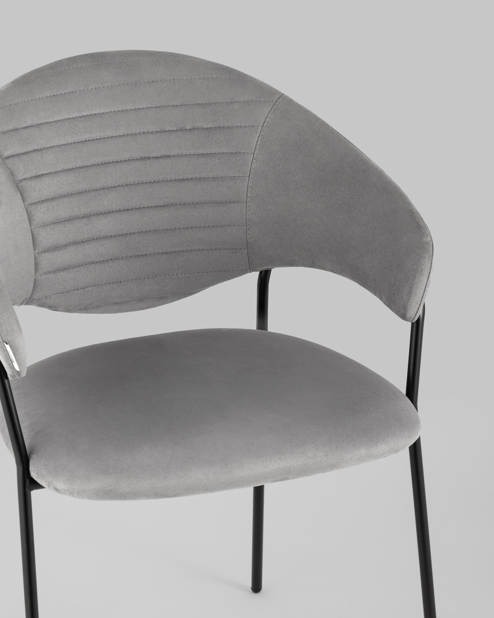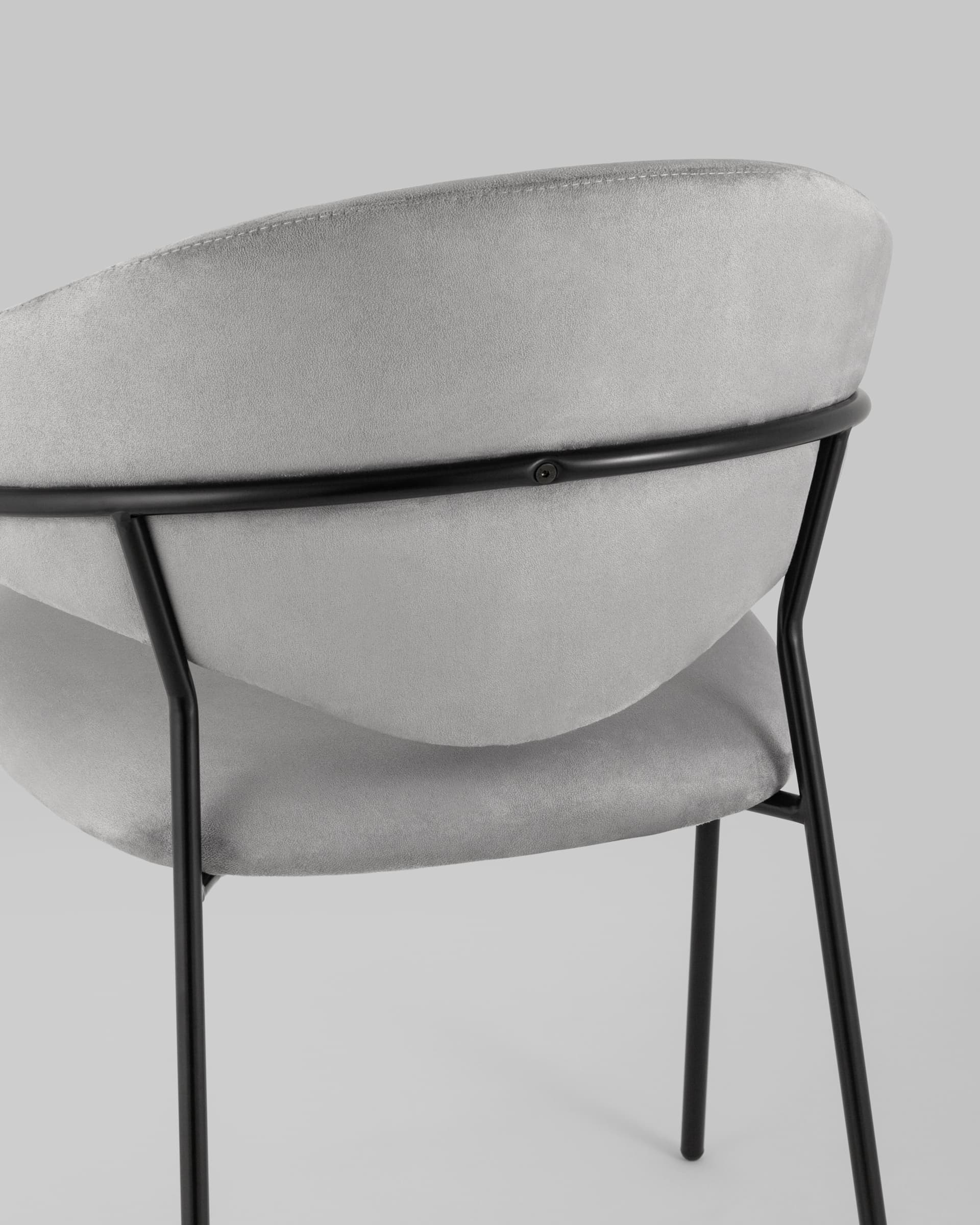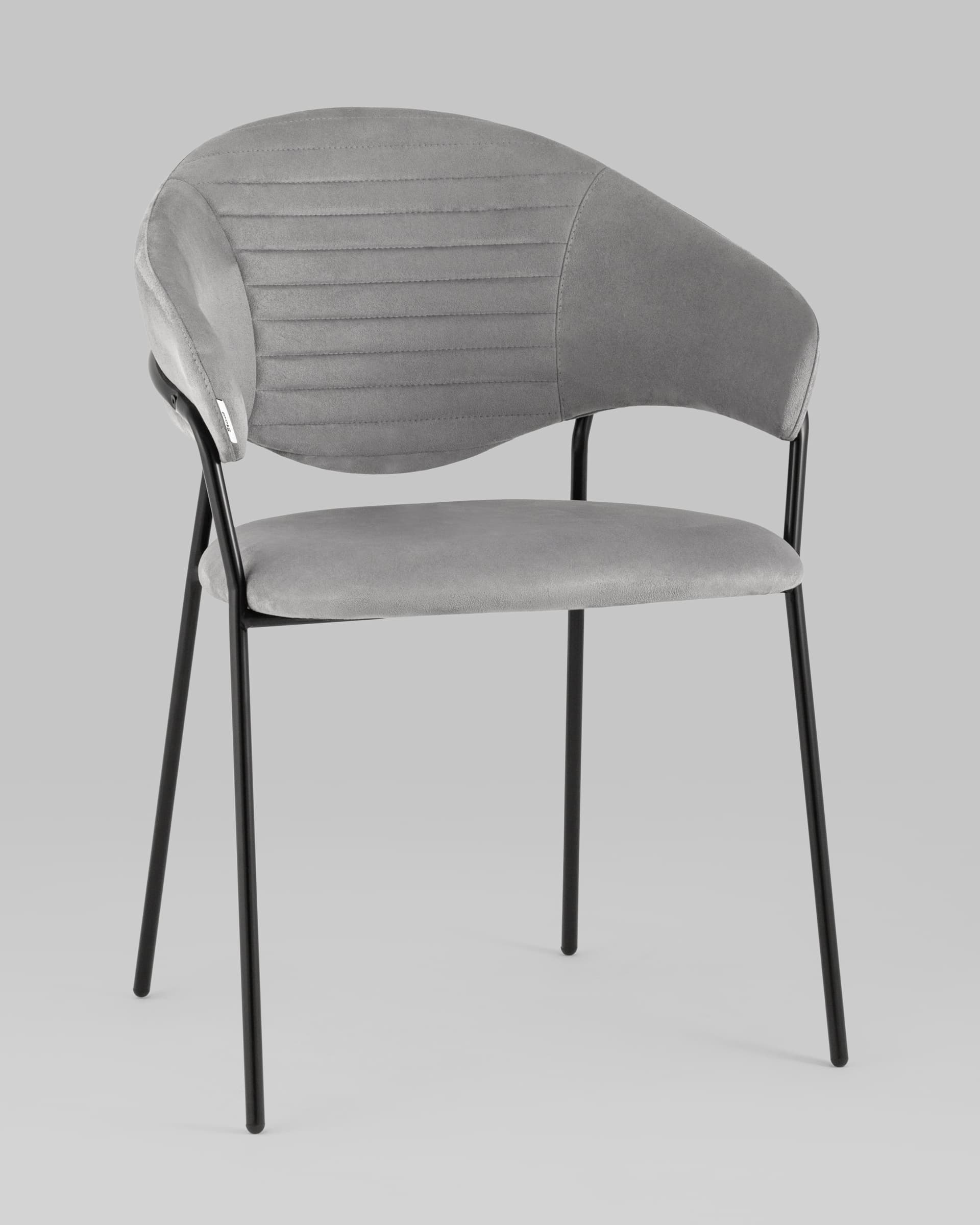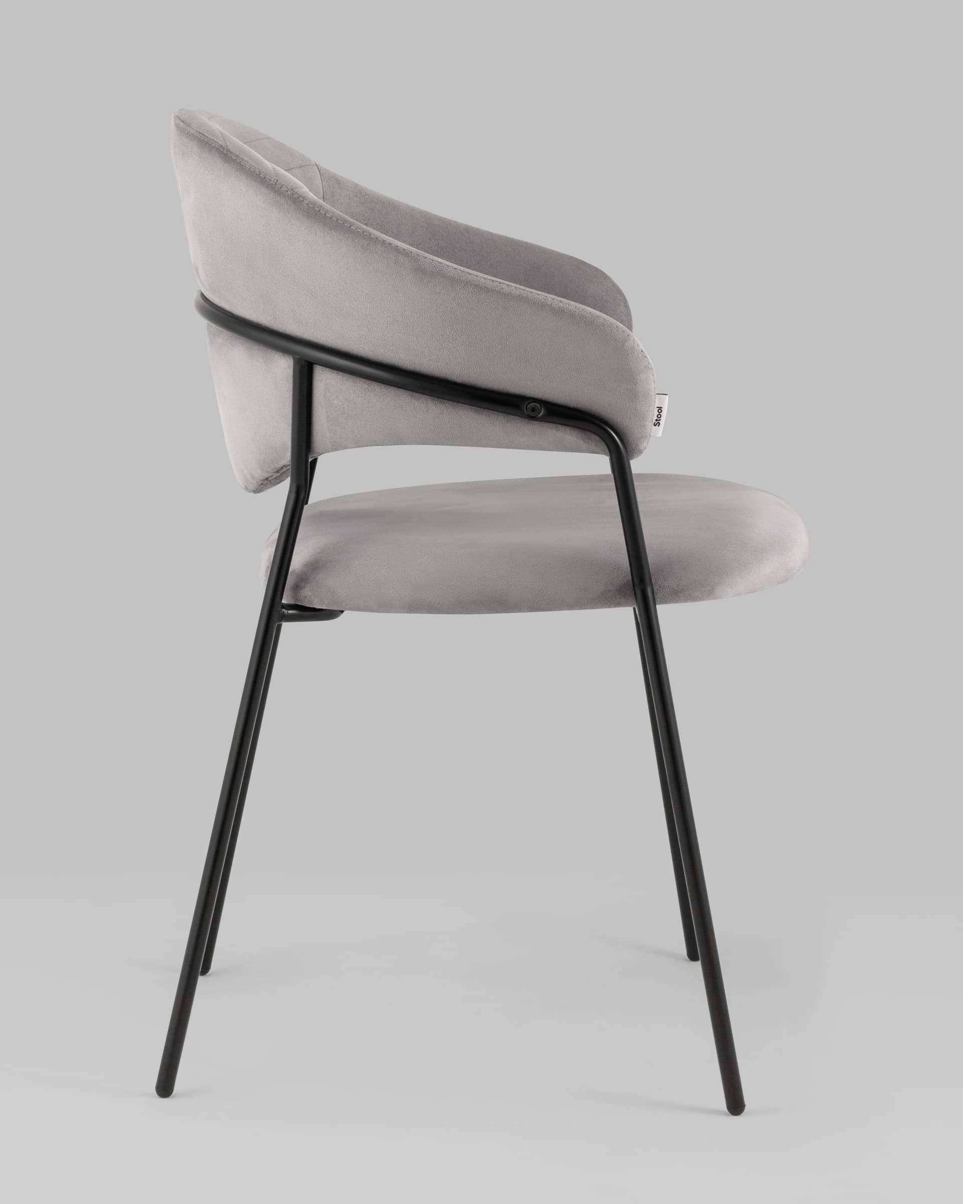 Стильный кухонный стул с оригинальной формой спинки, высокой поддержкой и подлокотниками. В качестве обивки используется мягкий велюр – приятный на ощупь износостойкий, гигроскопичный материал. Металлический каркас в черном цвете огибает спинку и выступает аккуратным акцентом модели. Широкое сиденье обеспечивает удобную посадку и уют.