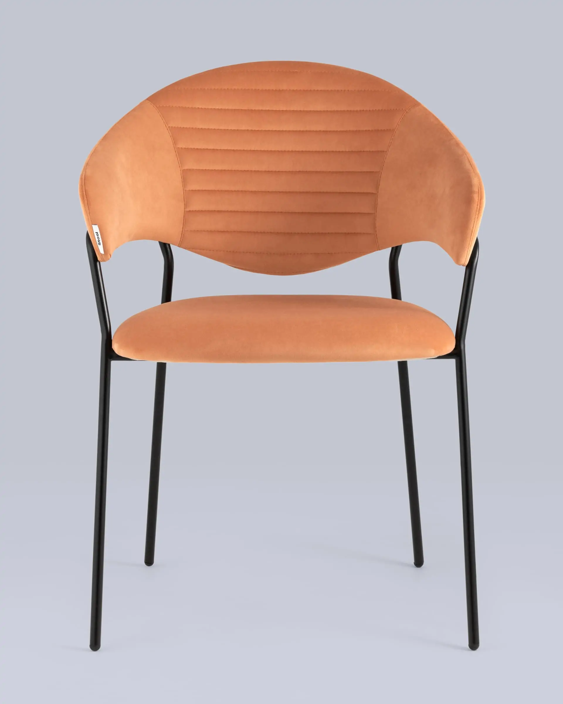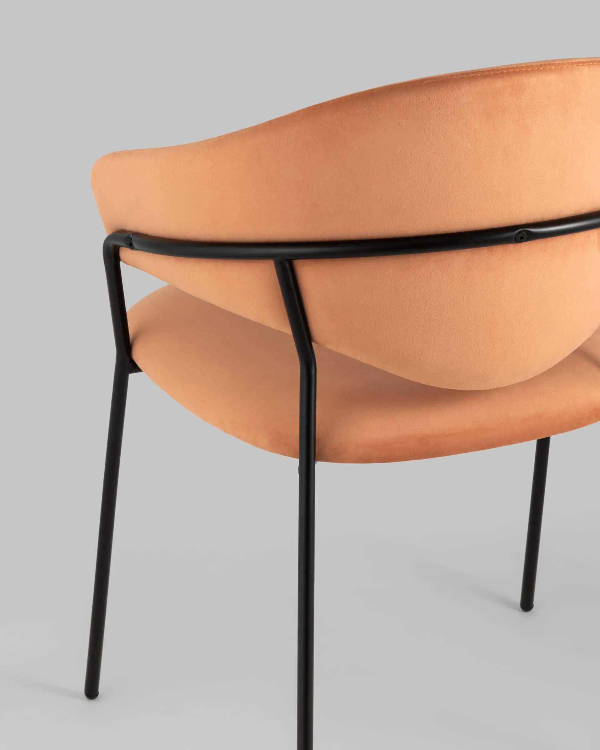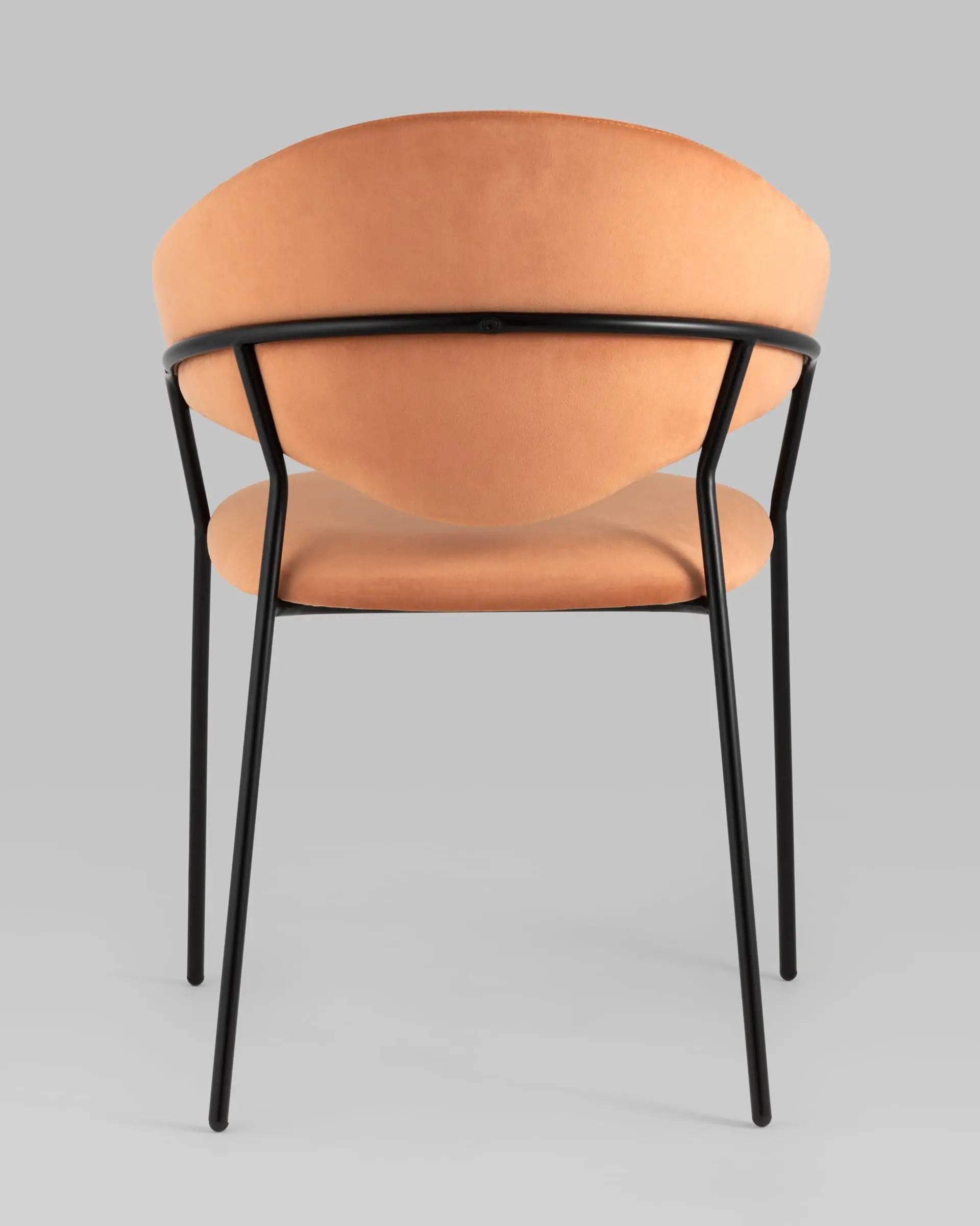Стильный кухонный стул с оригинальной формой спинки, высокой поддержкой и подлокотниками. В качестве обивки используется мягкий велюр – приятный на ощупь износостойкий, гигроскопичный материал. Металлический каркас в черном цвете огибает спинку и выступает аккуратным акцентом модели. Широкое сиденье обеспечивает удобную посадку и уют.