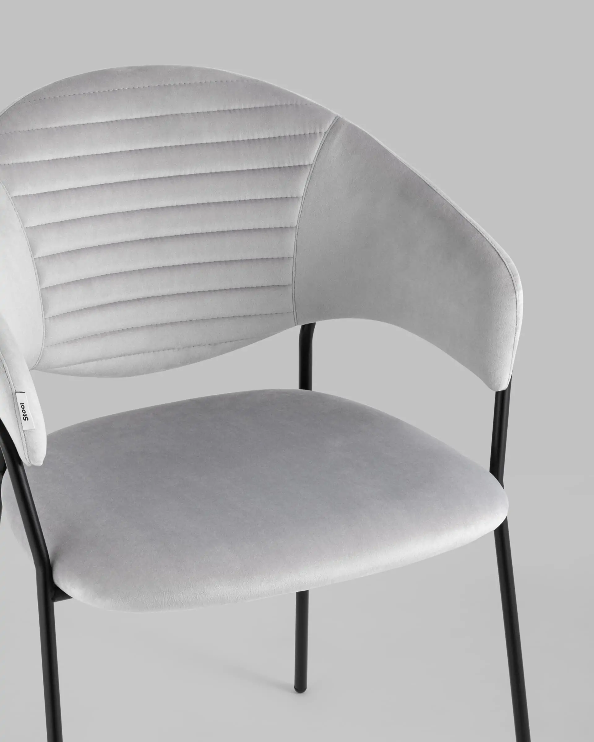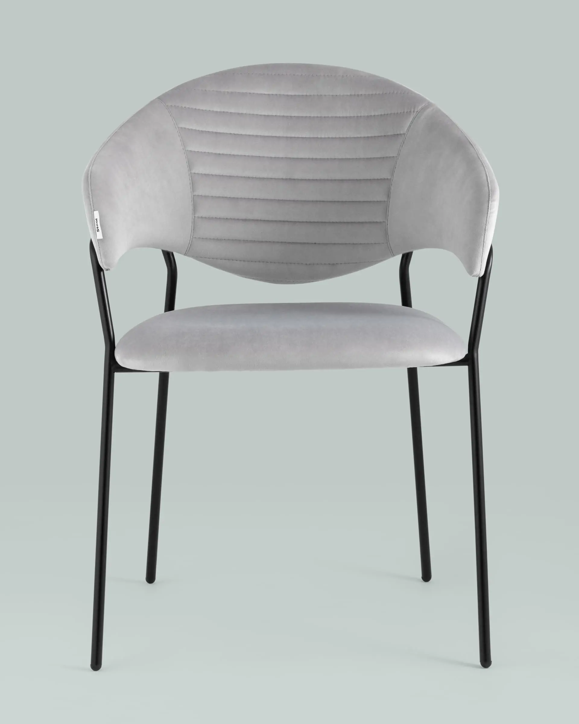 Стильный кухонный стул с оригинальной формой спинки, высокой поддержкой и подлокотниками. В качестве обивки используется мягкий велюр – приятный на ощупь износостойкий, гигроскопичный материал. Металлический каркас в черном цвете огибает спинку и выступает аккуратным акцентом модели. Широкое сиденье обеспечивает удобную посадку и уют.