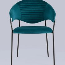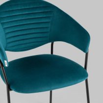 Стильный кухонный стул с оригинальной формой спинки, высокой поддержкой и подлокотниками. В качестве обивки используется мягкий велюр – приятный на ощупь износостойкий, гигроскопичный материал. Металлический каркас в черном цвете огибает спинку и выступает аккуратным акцентом модели. Широкое сиденье обеспечивает удобную посадку и уют.