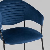 Стильный кухонный стул с оригинальной формой спинки, высокой поддержкой и подлокотниками. В качестве обивки используется мягкий велюр – приятный на ощупь износостойкий, гигроскопичный материал. Металлический каркас в черном цвете огибает спинку и выступает аккуратным акцентом модели. Широкое сиденье обеспечивает удобную посадку и уют.