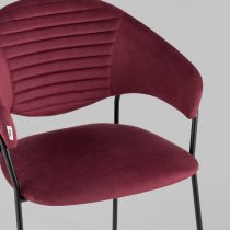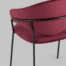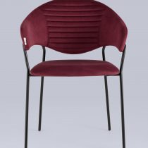 Стильный кухонный стул с оригинальной формой спинки, высокой поддержкой и подлокотниками. В качестве обивки используется мягкий велюр – приятный на ощупь износостойкий, гигроскопичный материал. Металлический каркас в черном цвете огибает спинку и выступает аккуратным акцентом модели. Широкое сиденье обеспечивает удобную посадку и уют.