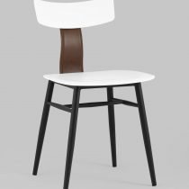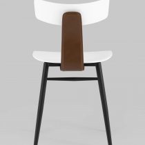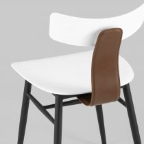 Сиденье стула выполнено из пластика, спинка декорирована цветным элементом из экокожи. Ножки металлические.