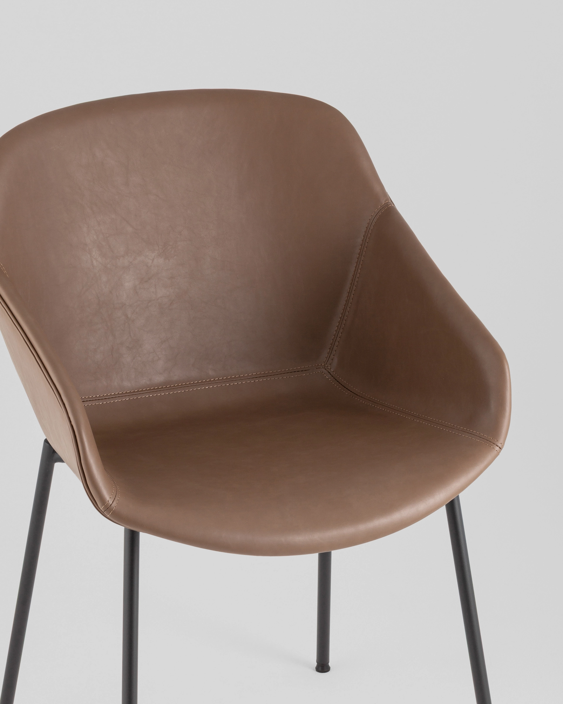 Элегантность и комфорт. Стул Ashby привнесет в ваш интерьер атмосферу элегантности и уюта. Обивка из гладкой экокожи светло-коричневого цвета отличается устойчивостью к влаге и перепадам температуры, поверхность можно легко и быстро очистить от загрязнений. Черные металлические ножки обеспечивают прочность и стабильность, придавая модели современный вид.