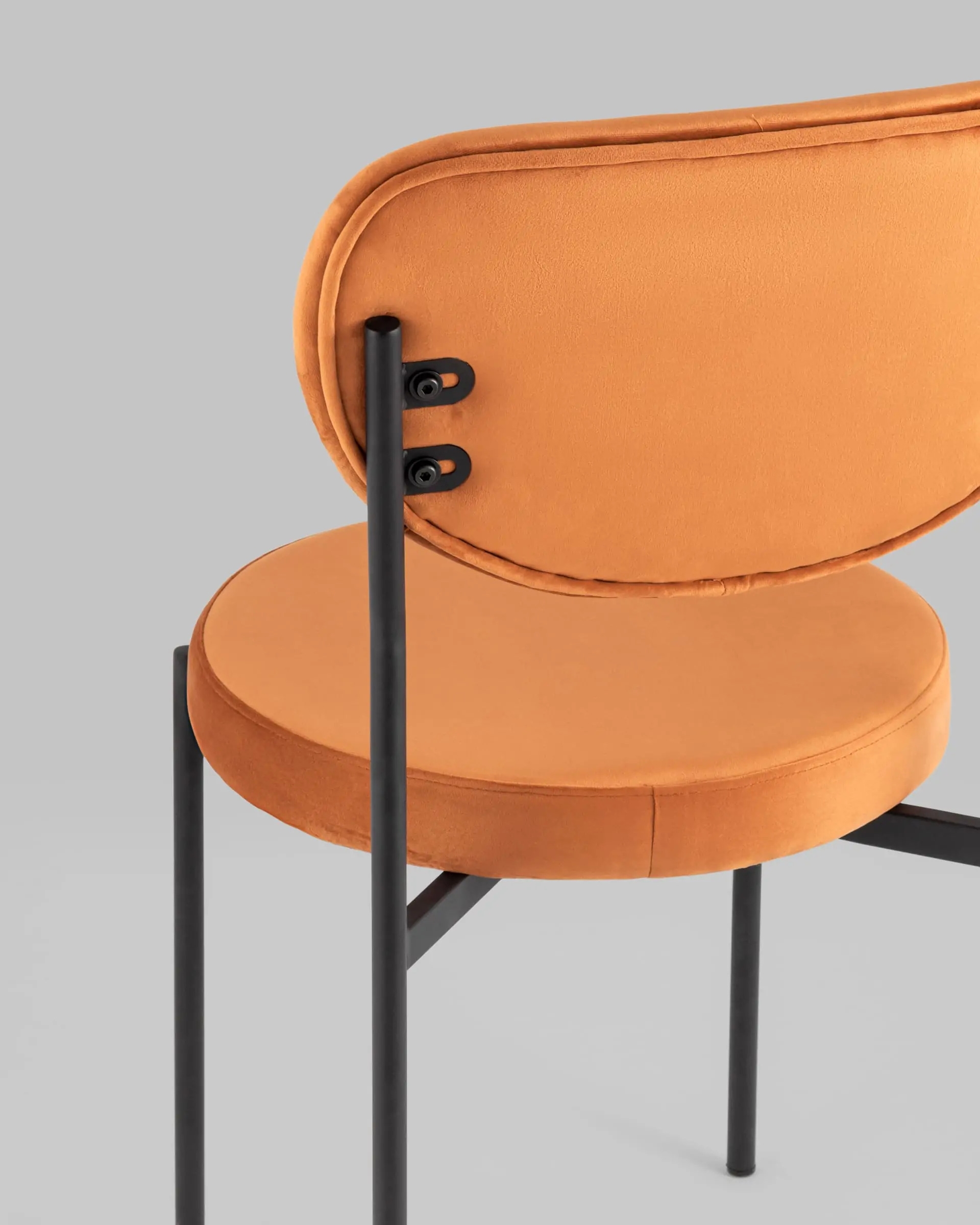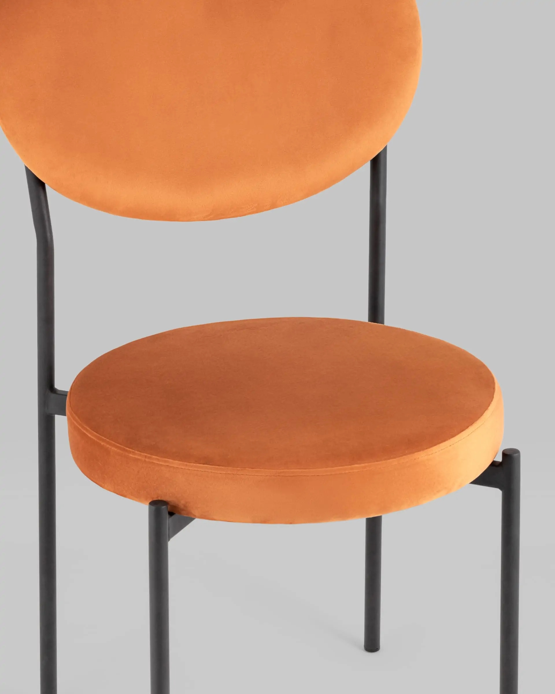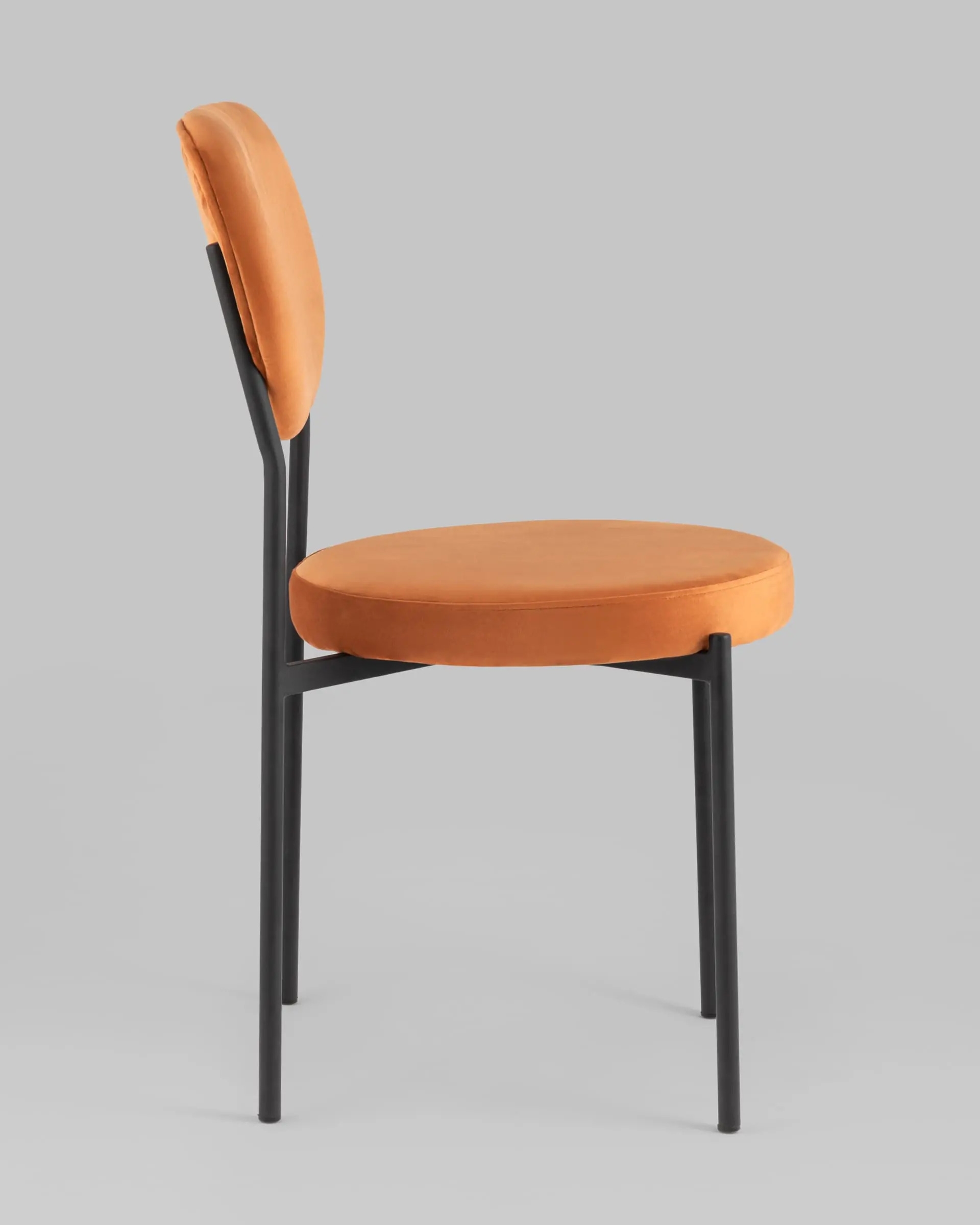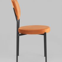 Стильный и мягкий обеденный стул Барбара подходит для эксплуатации на кухне или гостиной. Обивка выполнена из велюра, ножки изготовлены из металла.