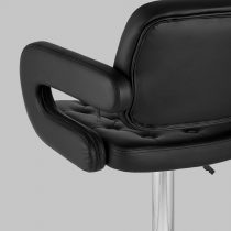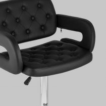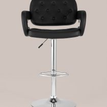 Для обивки сиденья барного стула использована PU-кожа – искусственный материал с высокой прочностью, износостойкостью и естественной фактурой. Каретная стяжка в оформлении спинки сиденья и черный цвет сочетаются с металлическим блеском гладкого хромированного основания. Высота сиденья регулируется от 61 до 83 сантиметров – можно подогнать под барную стойку или столешницу любого размера.