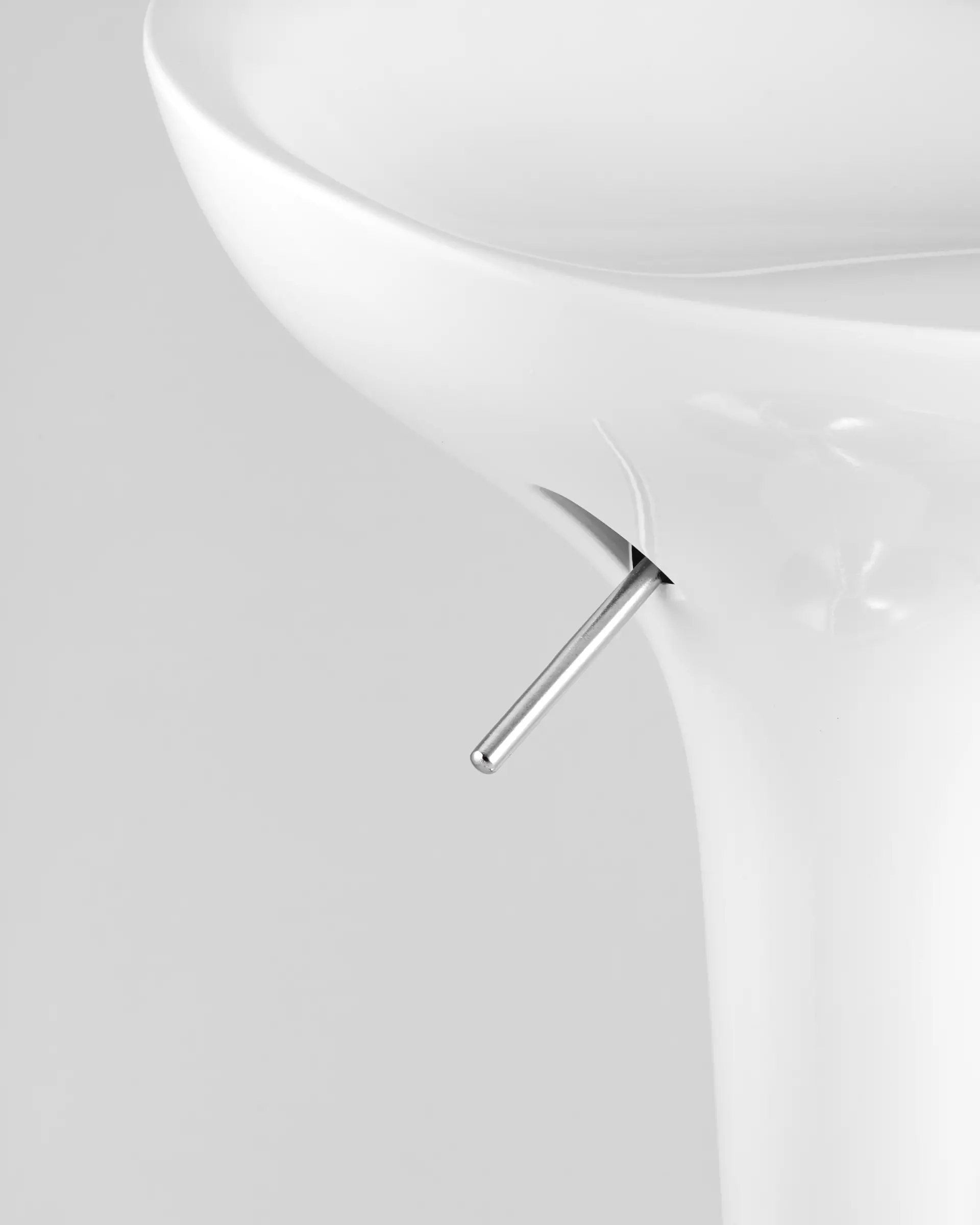 - Сидение выполнено из высокопрочной пластмассы приятного серебристого оттенка. Плавная форма сидения позволяет обеспечить посетителя комфортабельными условиями.