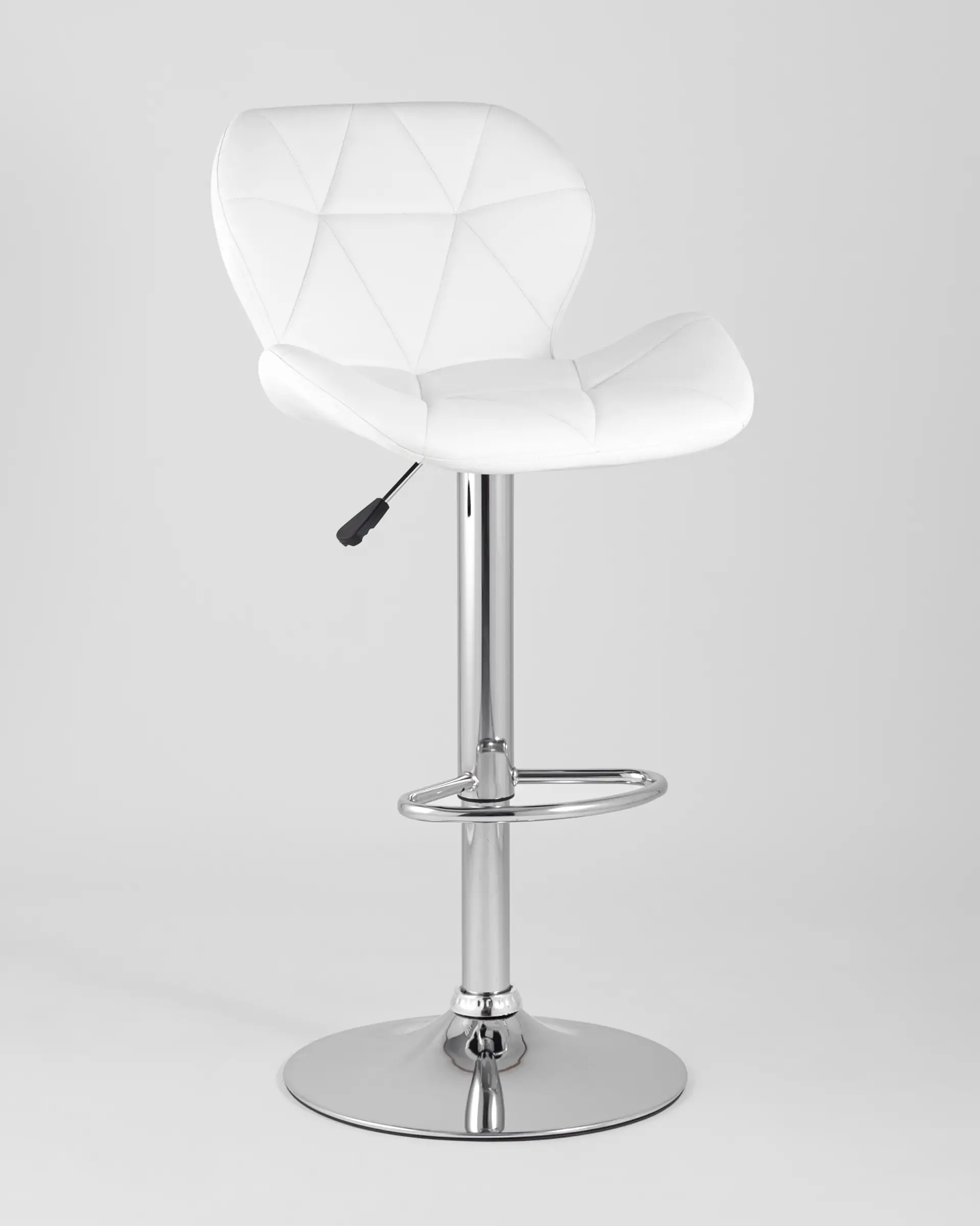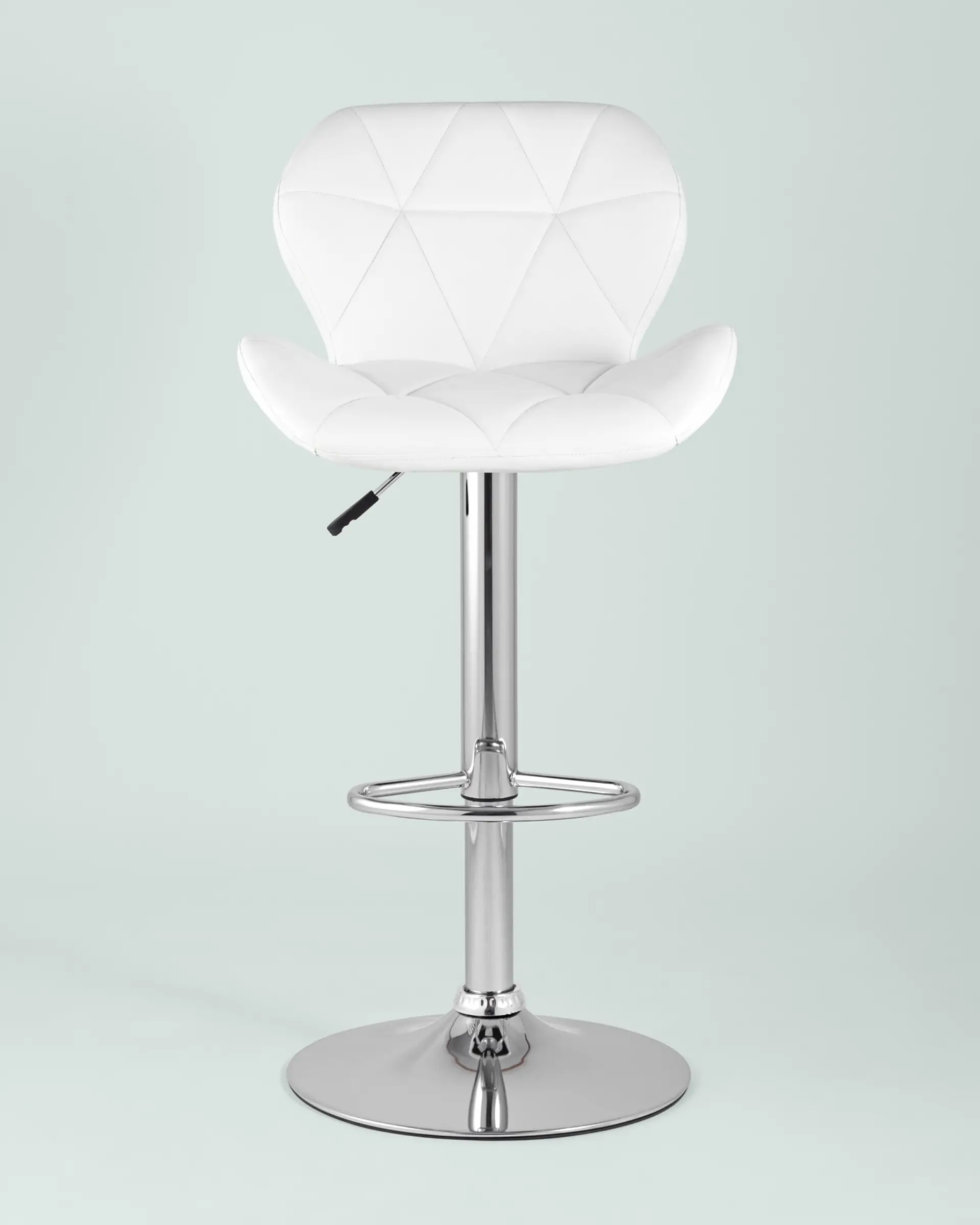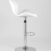 Спинка и сиденье обиты экокожей в белом цвете. Ножка выполнена из хромированного металла. Функция регулировки высоты сидения позволяет подобрать наиболее удобное положение.