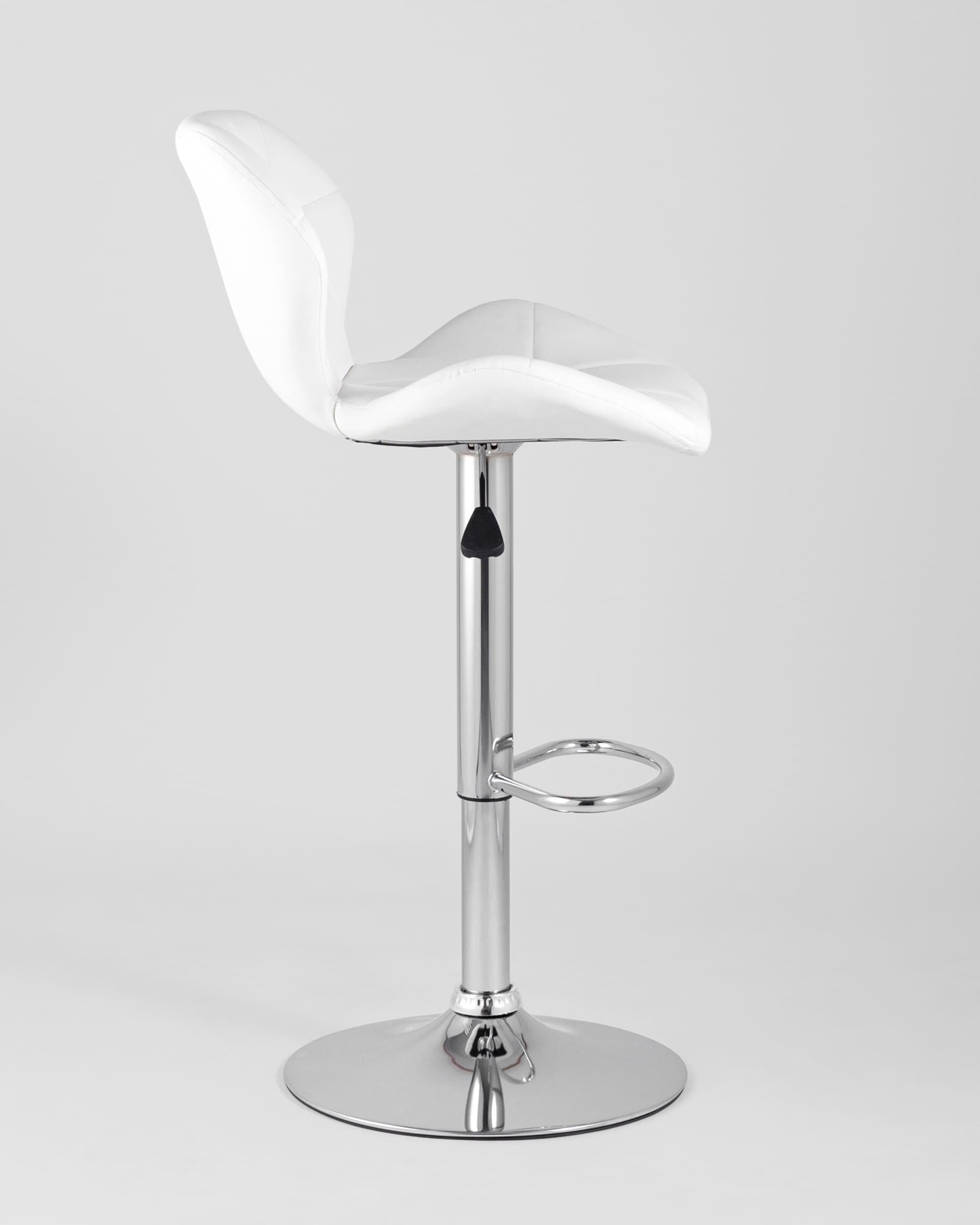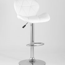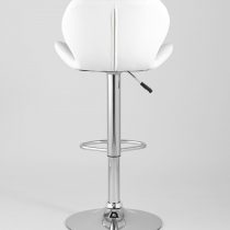 Спинка и сиденье обиты экокожей в белом цвете. Ножка выполнена из хромированного металла. Функция регулировки высоты сидения позволяет подобрать наиболее удобное положение.