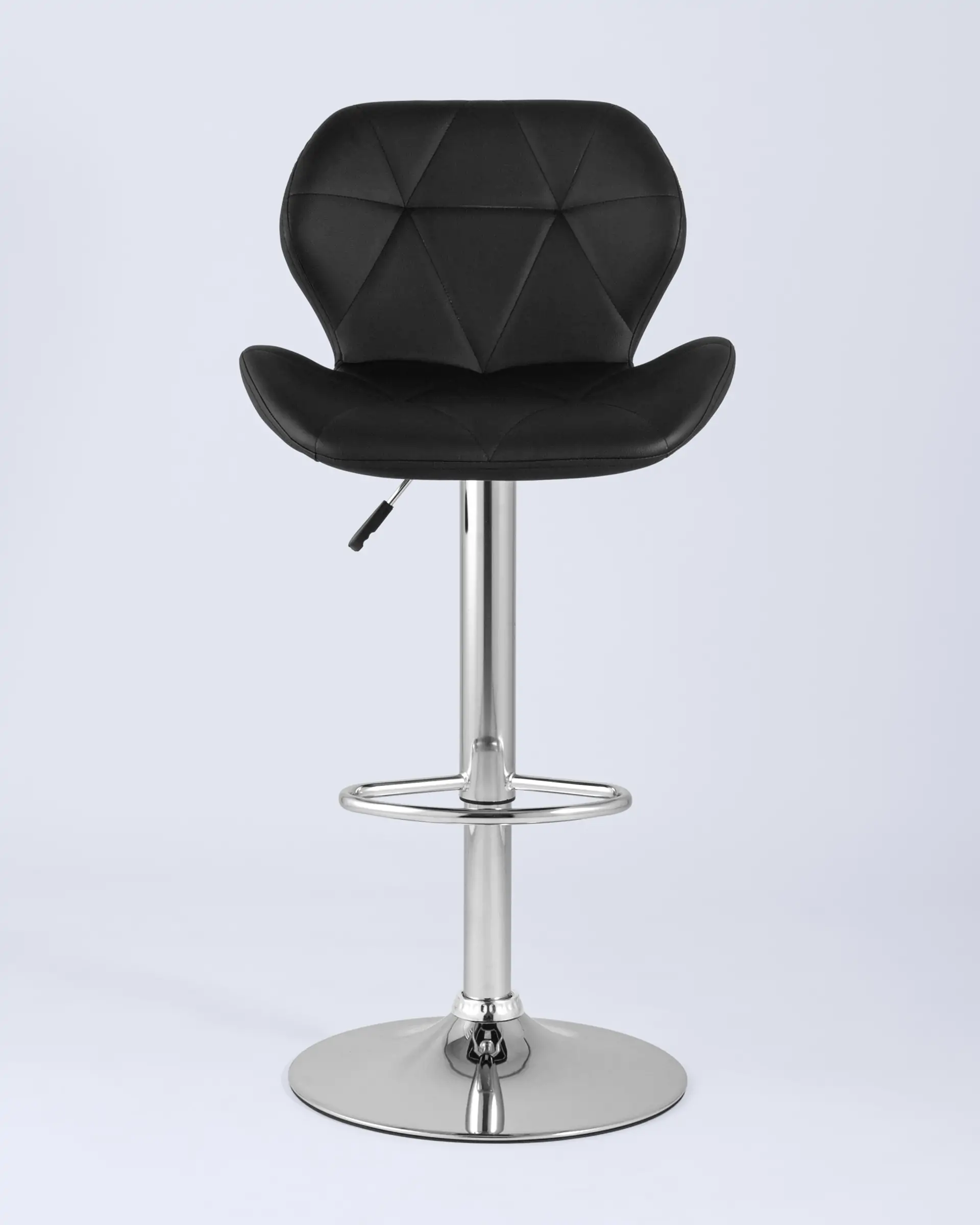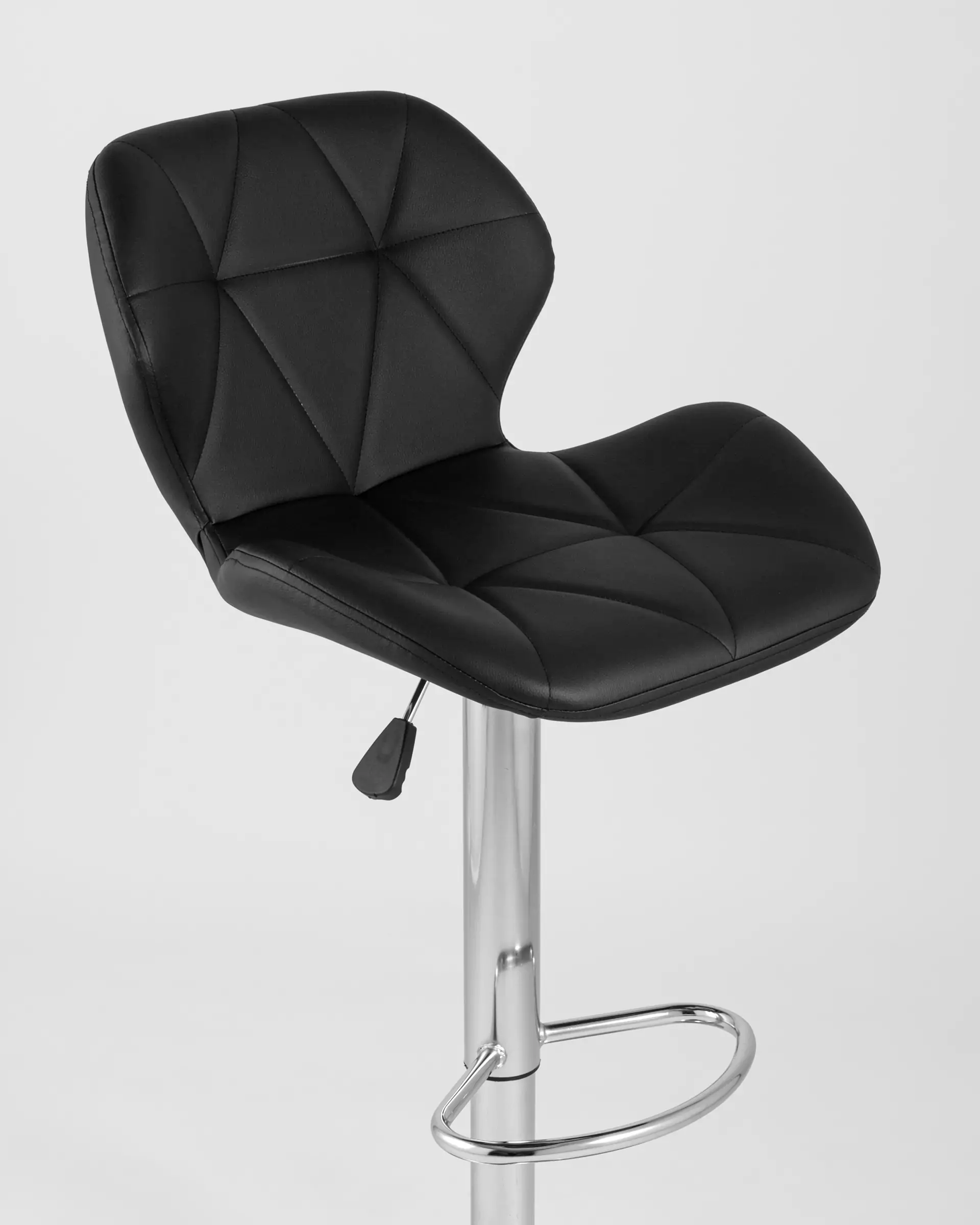 Спинка и сиденье обиты экокожей в черном цвете. Ножка выполнена из хромированного металла. Функция регулировки высоты сидения позволяет подобрать наиболее удобное положение.