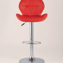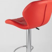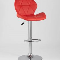 Спинка и сиденье обиты экокожей в красном цвете. Ножка выполнена из хромированного металла. Функция регулировки высоты сидения позволяет подобрать наиболее удобное положение.