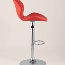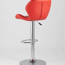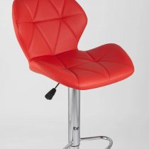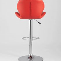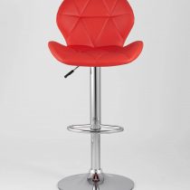 Спинка и сиденье обиты экокожей в красном цвете. Ножка выполнена из хромированного металла. Функция регулировки высоты сидения позволяет подобрать наиболее удобное положение.