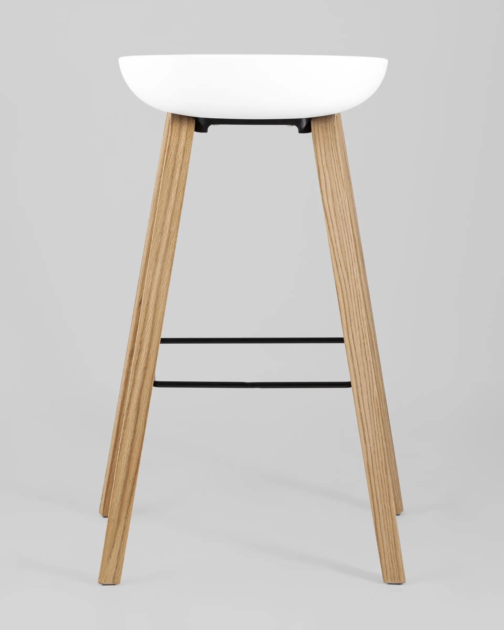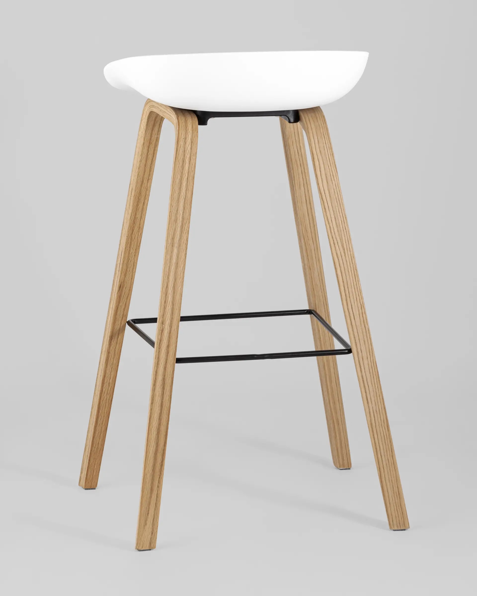 В дизайне модели «Либра» используется сочетание белого пластика и естественного оттенка натурального дерева – опоясывающая ножки опорная планка в тон сиденью уравновешивает цветовую комбинацию и подчеркивает модные геометрические формы барного стула. Высота соответствует стойке стандартной высоты.