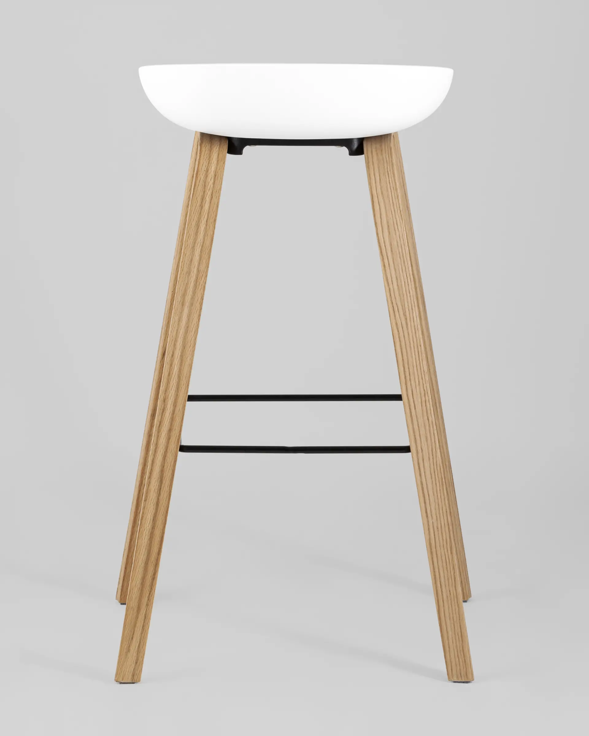 В дизайне модели «Либра» используется сочетание белого пластика и естественного оттенка натурального дерева – опоясывающая ножки опорная планка в тон сиденью уравновешивает цветовую комбинацию и подчеркивает модные геометрические формы барного стула. Высота соответствует стойке стандартной высоты.