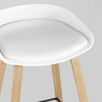 Барный стул Libra Soft белого цвета создан из пластика и дерева. Гармоничное сочетание этих материалов – основа интерьеров в стиле лофт, минимализм и других современных направлений. Модель выглядит очень элегантно и лаконично, благодаря четким геометрическим формам, отсутствию подлокотников и полноценной спинки. Высота изделия соответствует стандартной барной стойке и составляет 75 см.
