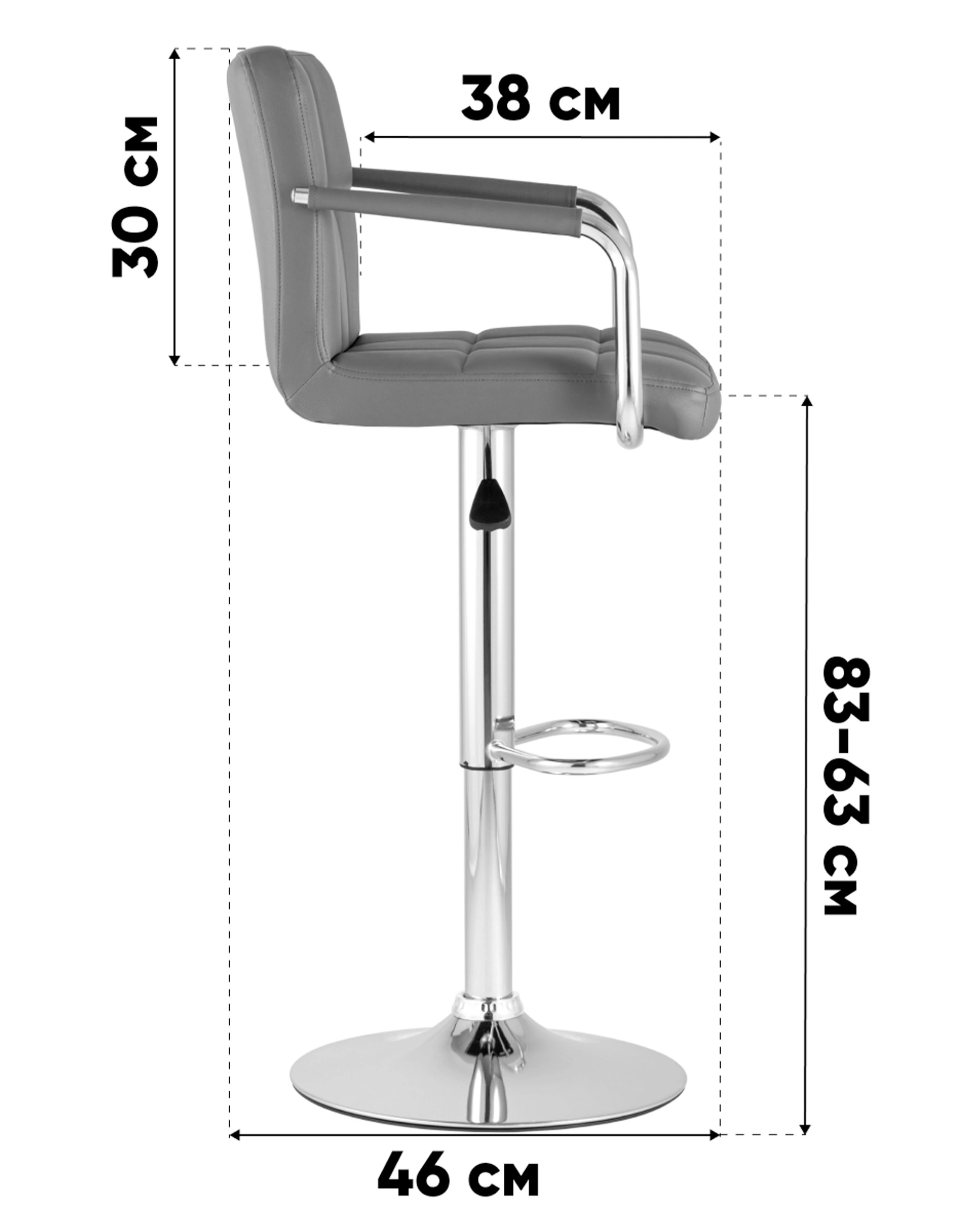 Материалы: хромированный металл, газ-лифт, фанера, искусственная кожа PU. Регулировка высоты 63-83 см.