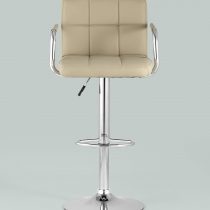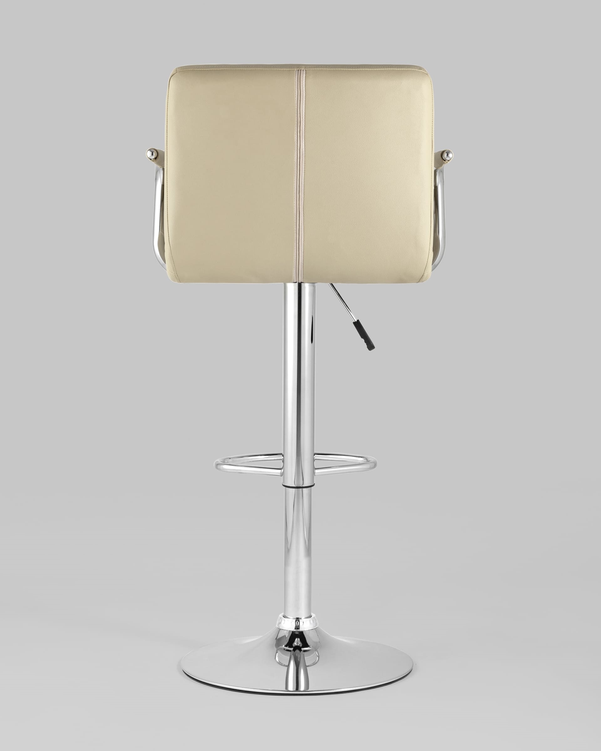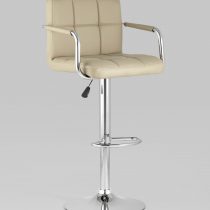 Материалы: хромированный металл, газ-лифт, фанера, искусственная кожа PU. Регулировка высоты 63-83 см Максимальная нагрузка на газ-лифт до 100 кг. Мягкий барный стул с подлокотниками в стиле баухаус. Стул снабжен поворотно подъемным механизмом газ-лифт. Обивка сиденья — искусственная кожа. Идеальное решение для домашнего бара.