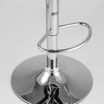 Каркас с подножкой выполнен из хромированного металла, который пользуется популярностью благодаря повышенной надежности в эксплуатации, влагостойкости и антикоррозийности, стильному и эстетичному внешнему виду. Для удобства использования он оснащен газ-лифтом – механизмом регулировки высоты (поднимается до 20 см). Сиденье вращается на 360 градусов. Отличительная черта модели – металлическая база с диаметром 410 мм, что делает ее более устойчивой в сравнении с другими модификациями.