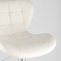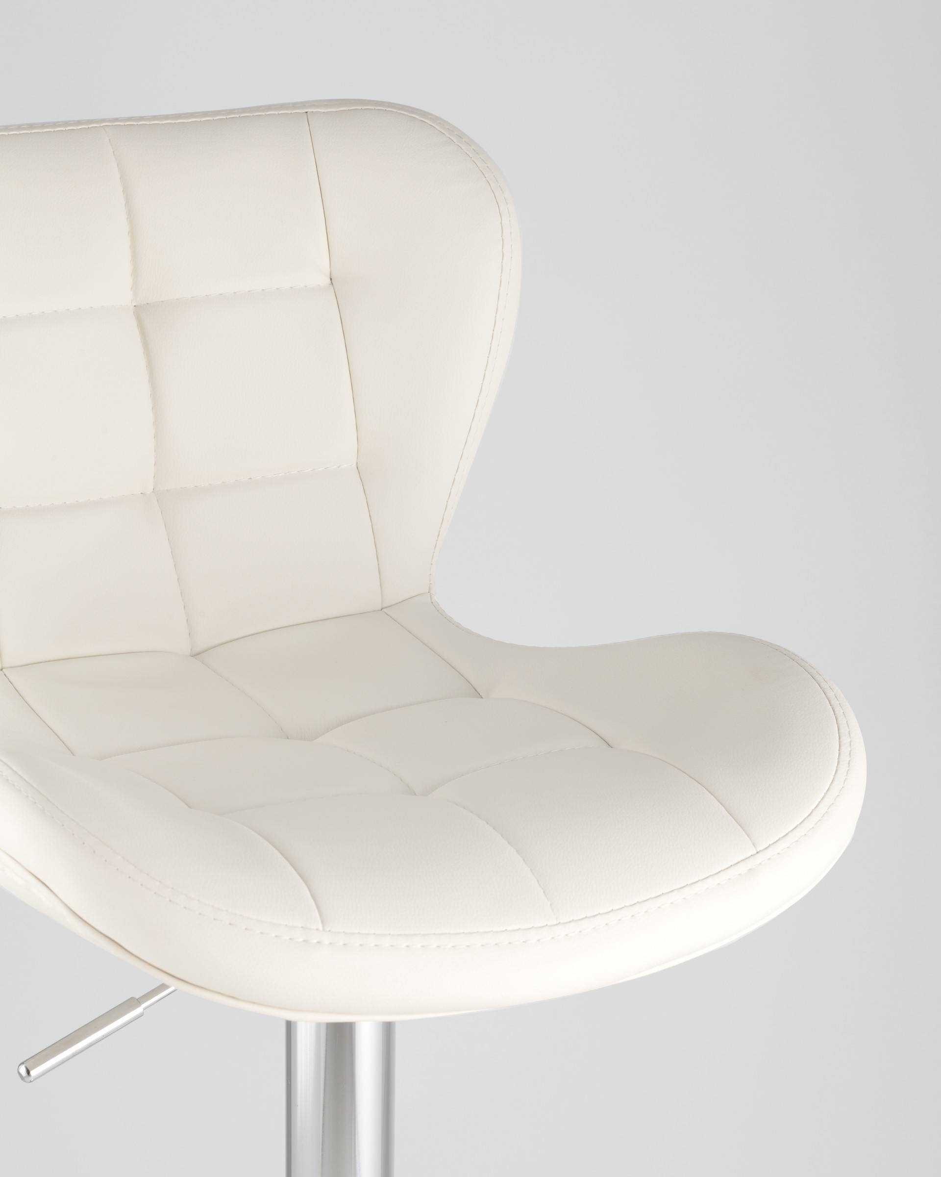 Мягкое сиденье стула выполнено из белой PU-кожи с минималистичной прострочкой крупными прямоугольниками вдоль самого сиденья и спинки, цельный каркас с широким устойчивым основанием – из блестящего хромированного металла. Благодаря выраженному плавному скату от основания к спинке на стуле можно удобно устроиться даже без подлокотников. Доставляется разобранным в компактной картонной упаковке, инструкция по сборке и сертификаты прилагаются. Производитель – компания «Стул Груп».