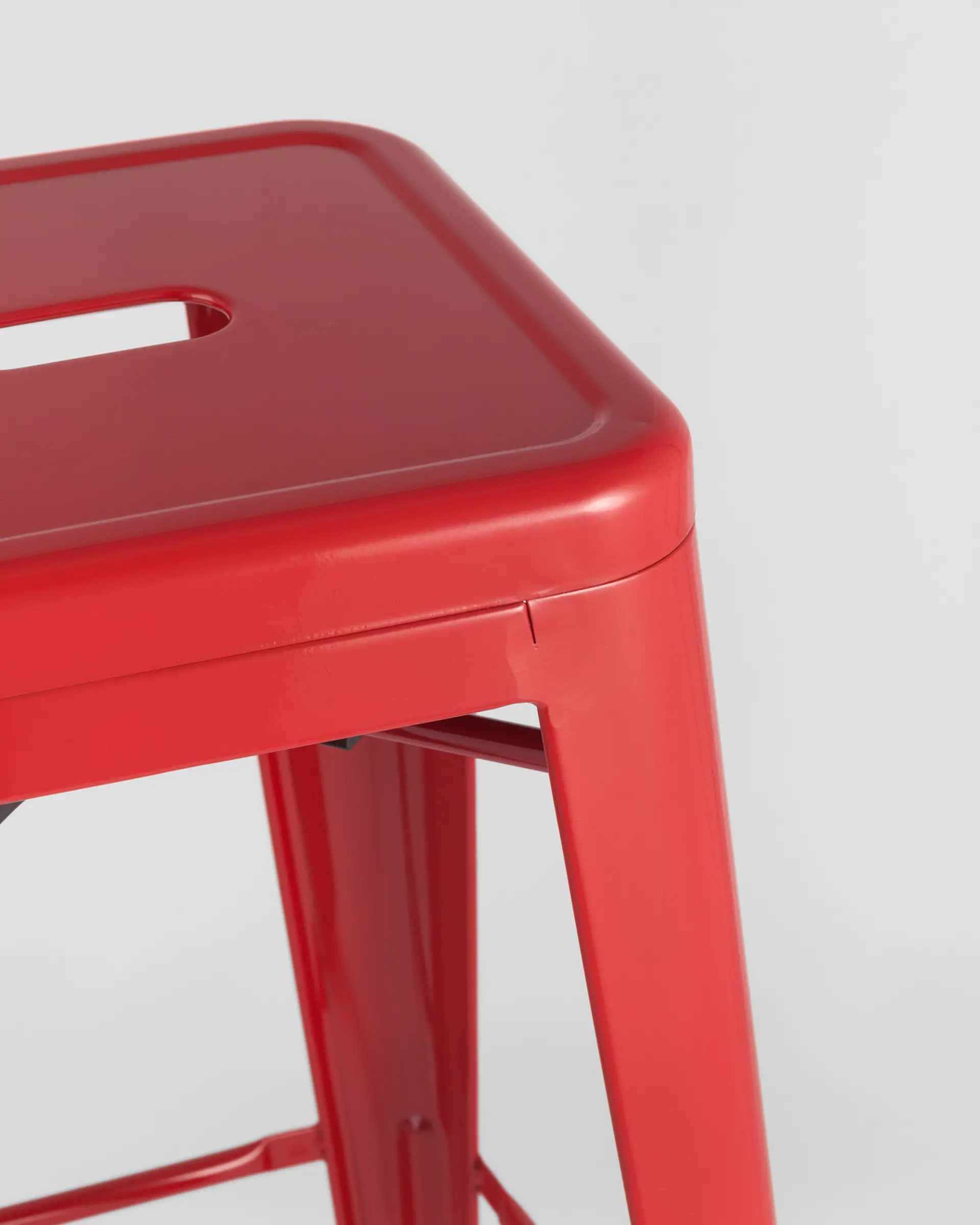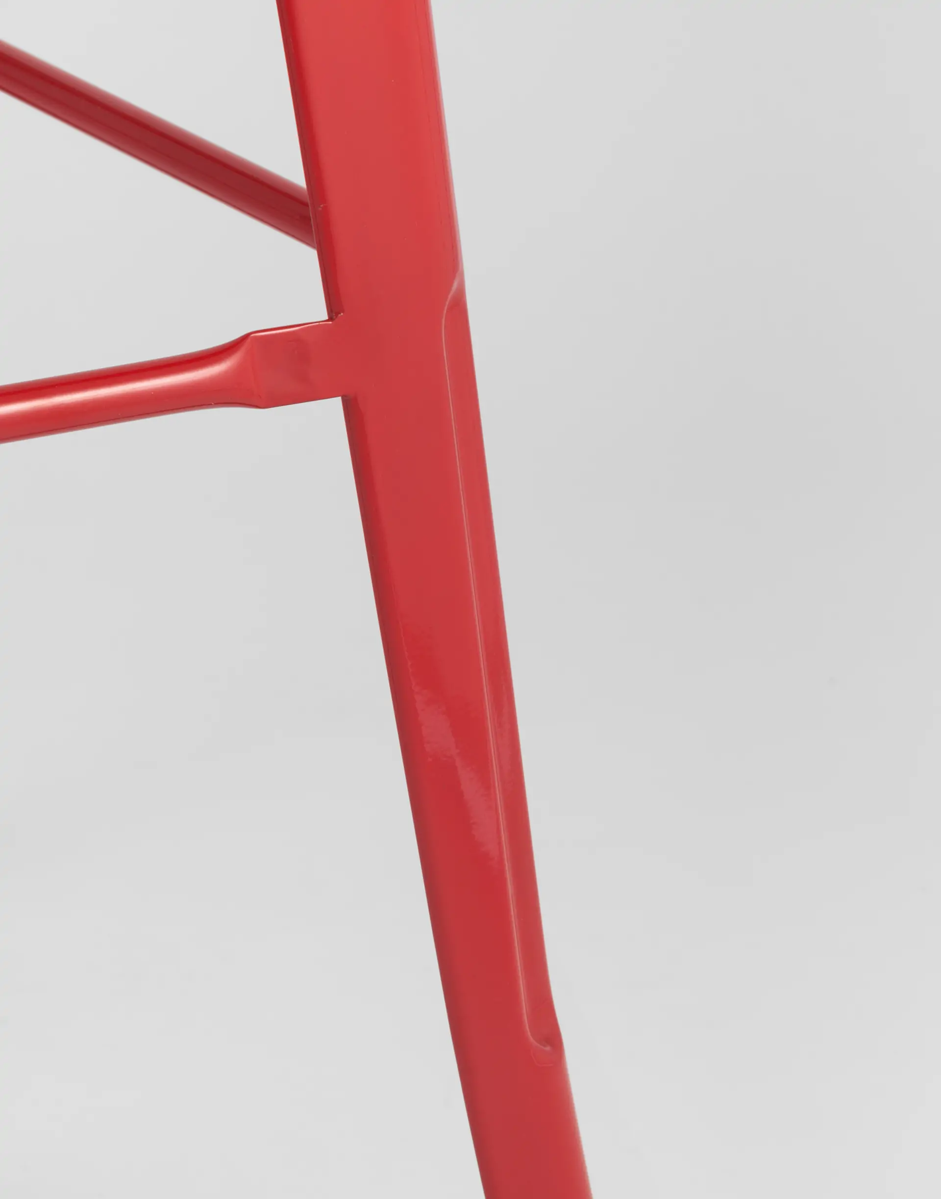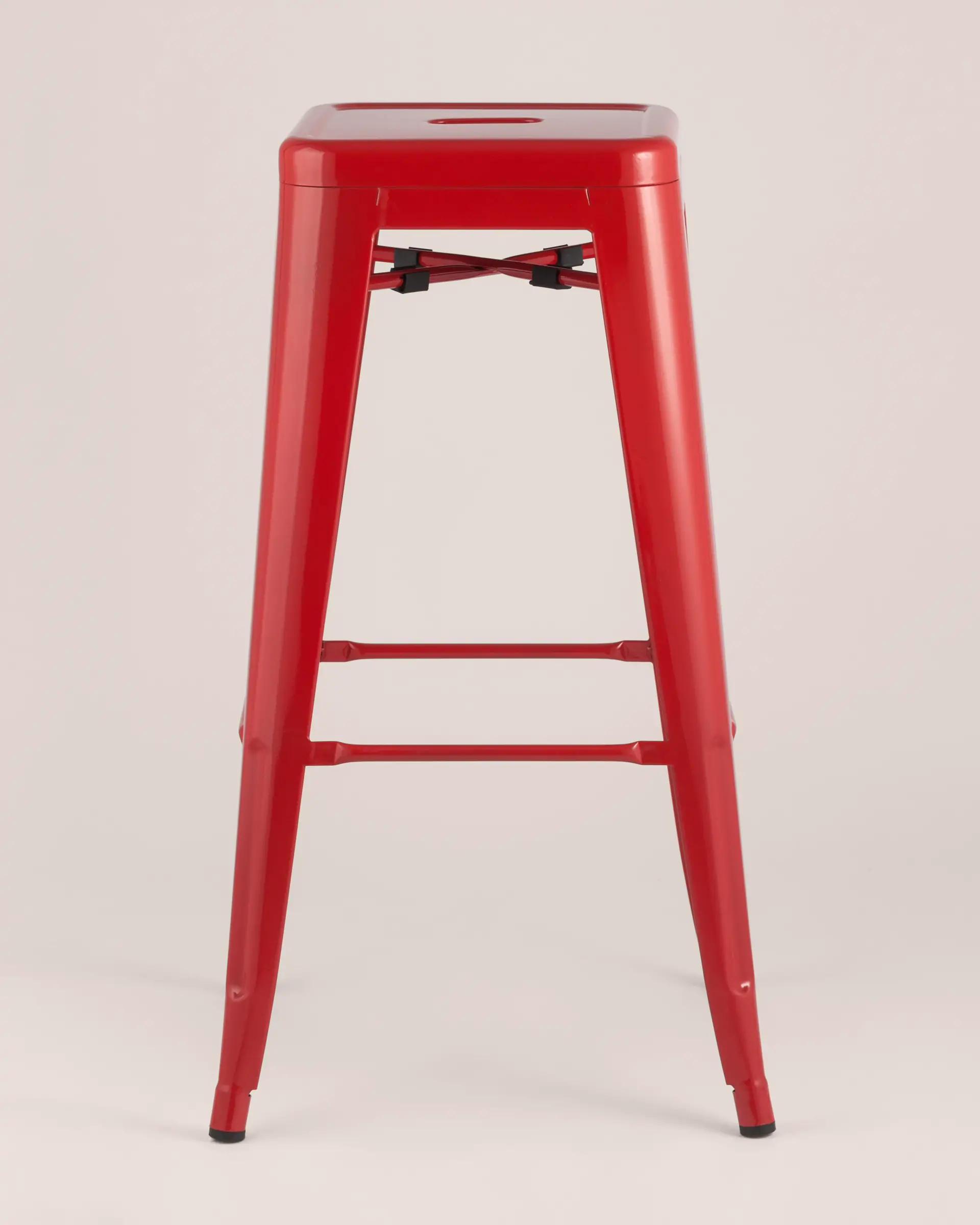 Барный табурет Tolix – воплощение качества и практичности. Удобный металлический стул на четырех опорах окрашен в красный глянцевый цвет. Он может стать стильным дополнением интерьера модного заведения или домашней столовой.