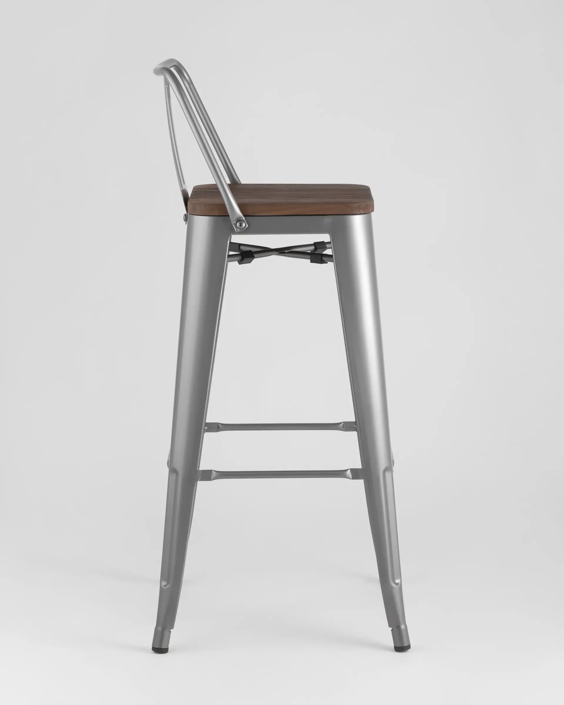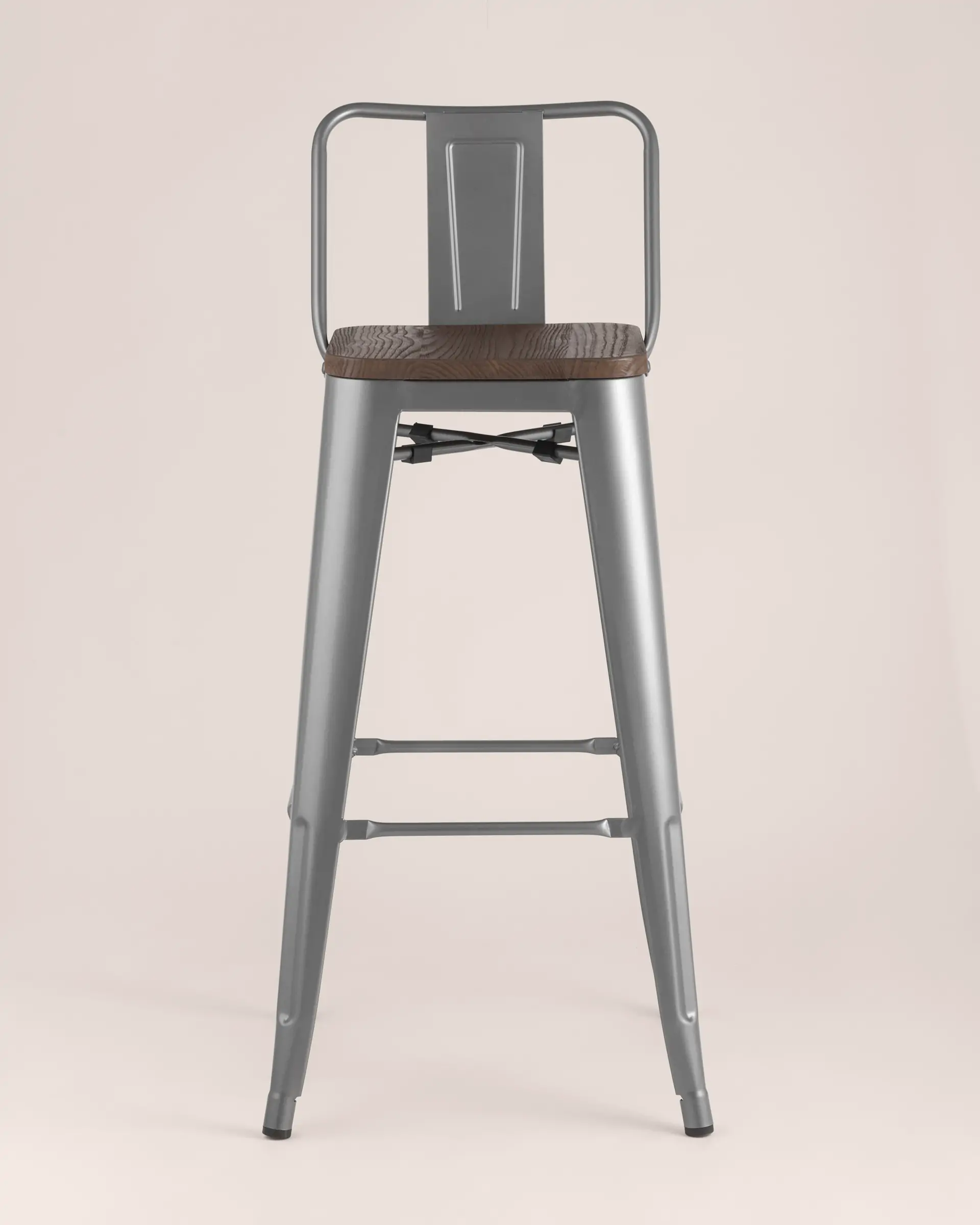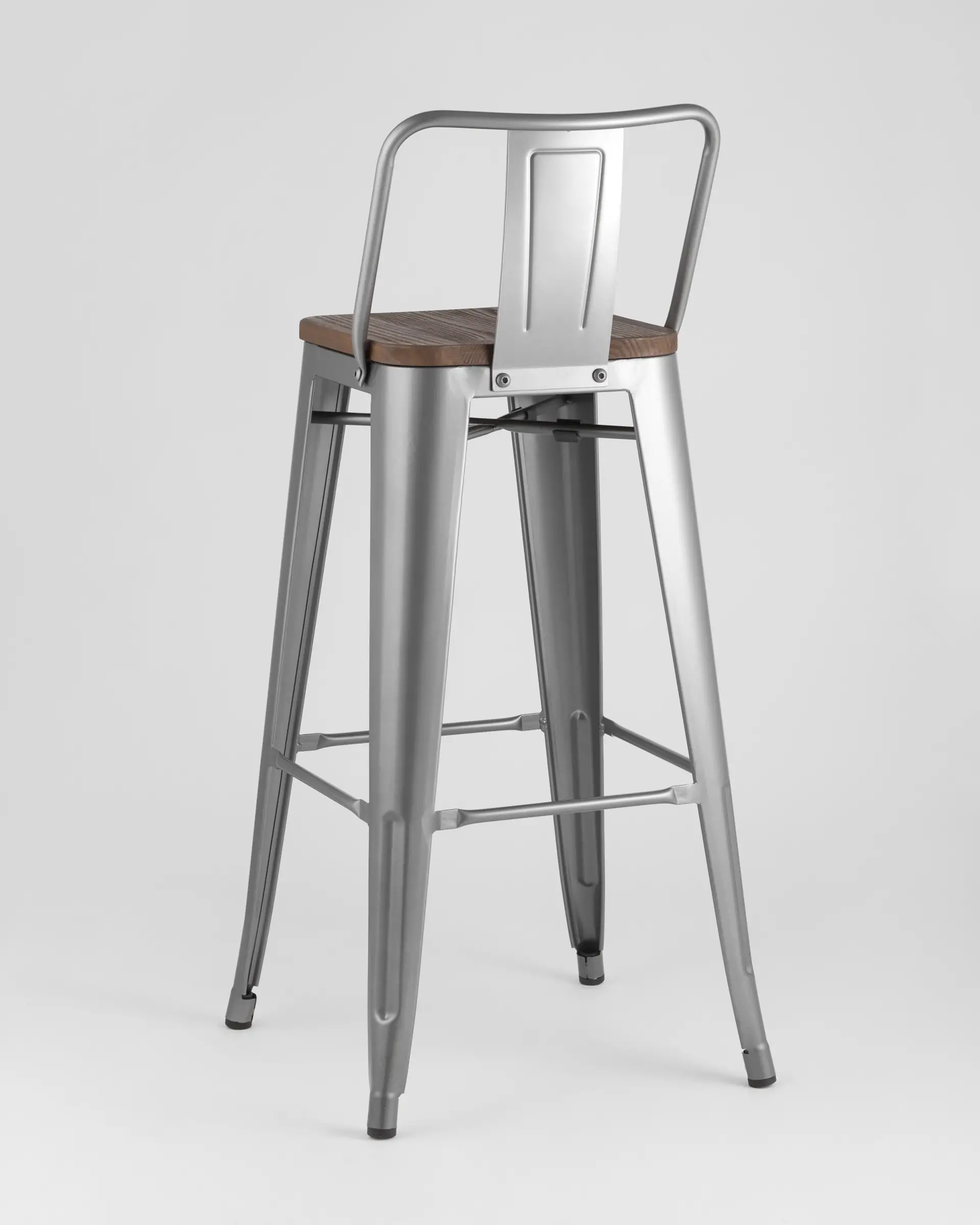 Барный стул Tolix серебристого цвета привлекает внимание необычным дизайном и строгой окраской. Наиболее выразительная деталь – массивное металлическое основание серебристого цвета, благодаря которому модель устойчива даже на неровных поверхностях. Широкая низкая спинка в тон основания выполнена из оцинкованного металла с порошковым напылением, сиденье – из натурального дерева цвета венге. Модель «Толикс» подойдет для дома, может использоваться в кафе и барах, на открытых террасах ресторанов, где предусмотрен интерьер в стиле Лофт или средневековый.