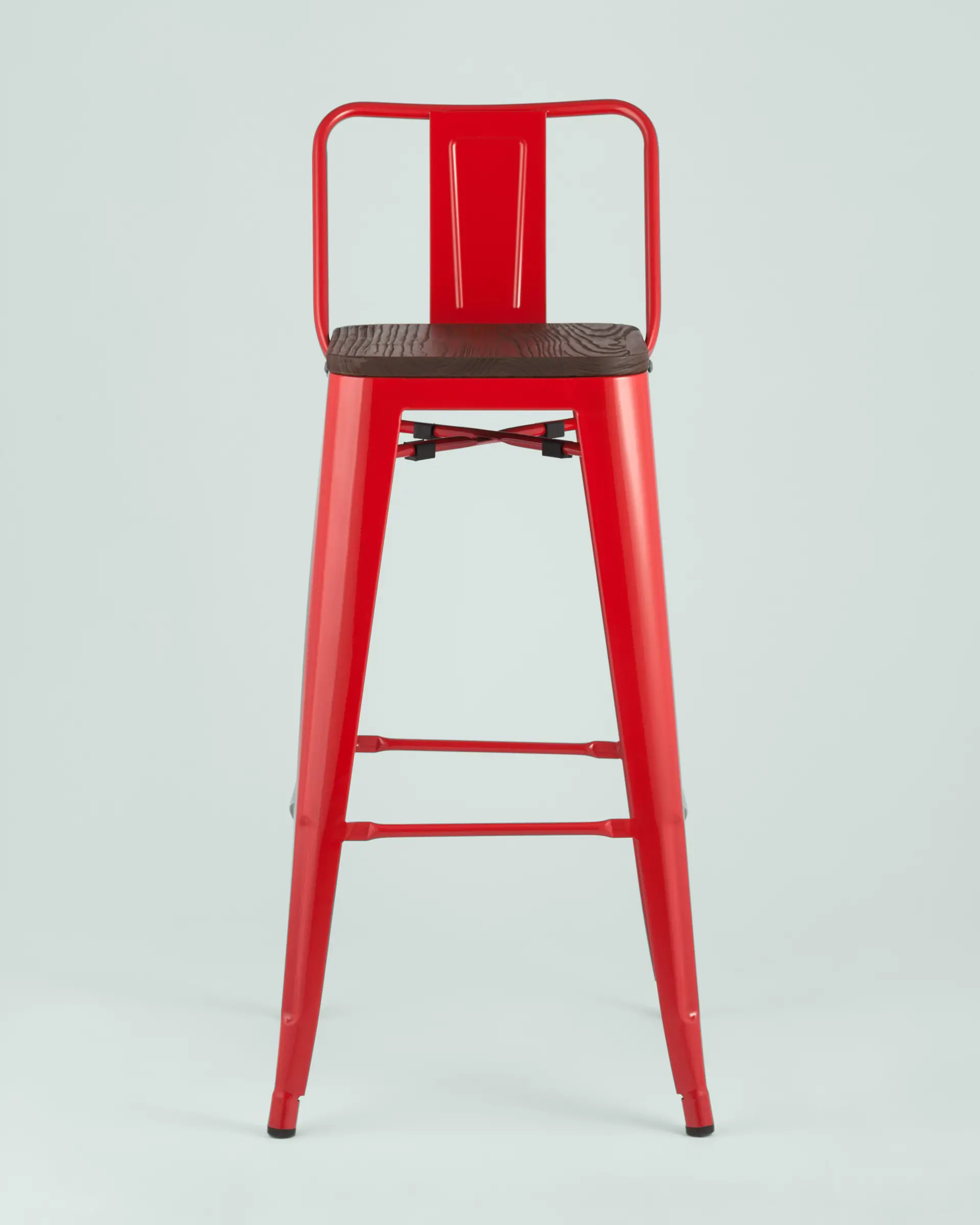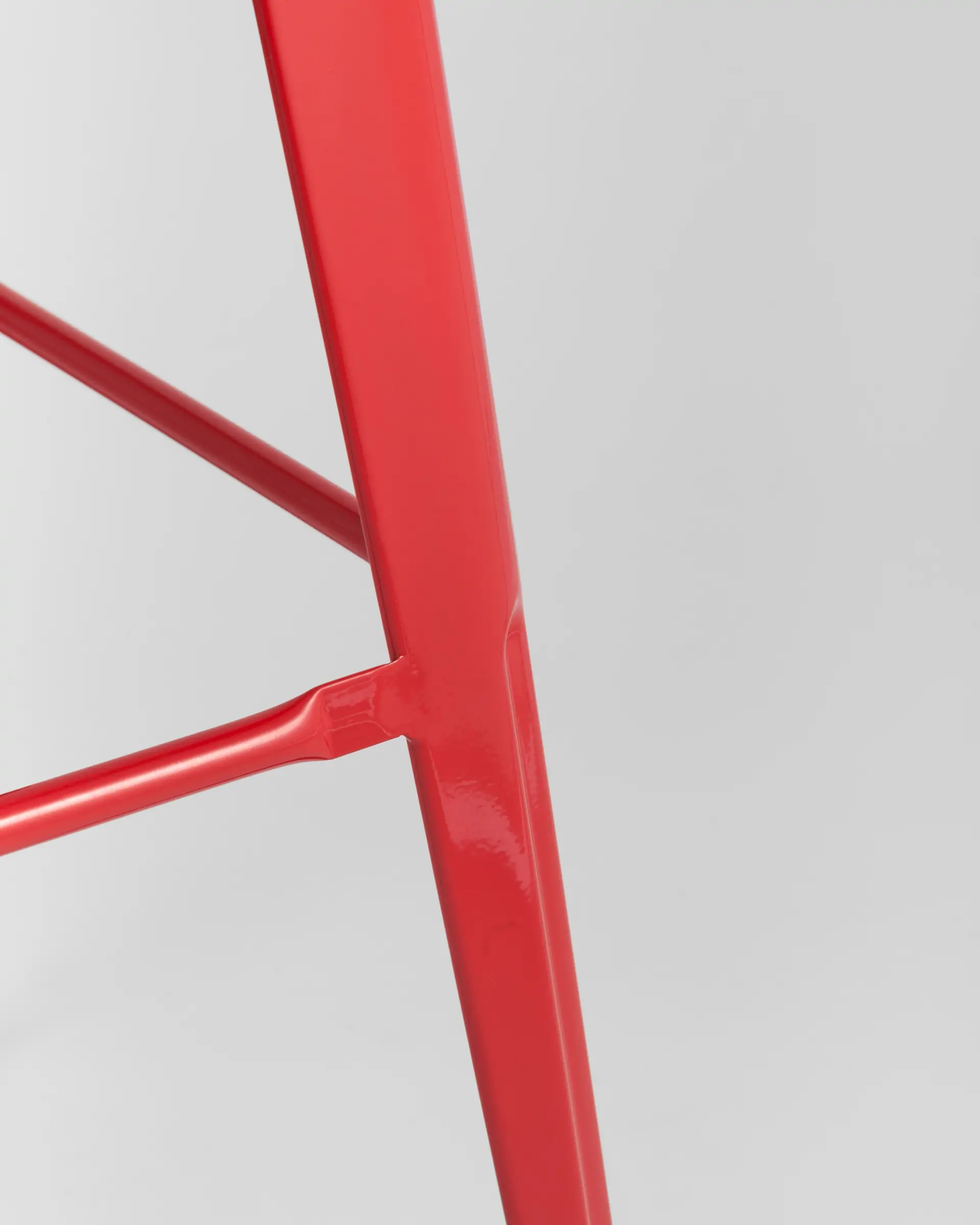 Барный стул Tolix красного цвета привлекает внимание необычным дизайном и строгой окраской. Наиболее выразительная деталь – массивное металлическое основание красного цвета, благодаря которому модель устойчива даже на неровных поверхностях. Широкая низкая спинка в тон основания выполнена из оцинкованного металла с порошковым напылением, сиденье – из натурального дерева цвета венге. Модель «Толикс» подойдет для дома, может использоваться в кафе и барах, на открытых террасах ресторанов, где предусмотрен интерьер в стиле Лофт или средневековый.