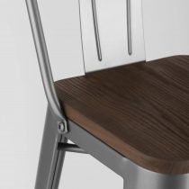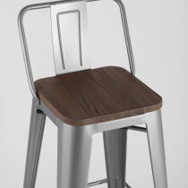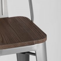 Барный стул Tolix серебристого цвета привлекает внимание необычным дизайном и строгой окраской. Наиболее выразительная деталь – массивное металлическое основание серебристого цвета, благодаря которому модель устойчива даже на неровных поверхностях. Широкая низкая спинка в тон основания выполнена из оцинкованного металла с порошковым напылением, сиденье – из натурального дерева цвета венге. Модель «Толикс» подойдет для дома, может использоваться в кафе и барах, на открытых террасах ресторанов, где предусмотрен интерьер в стиле Лофт или средневековый.