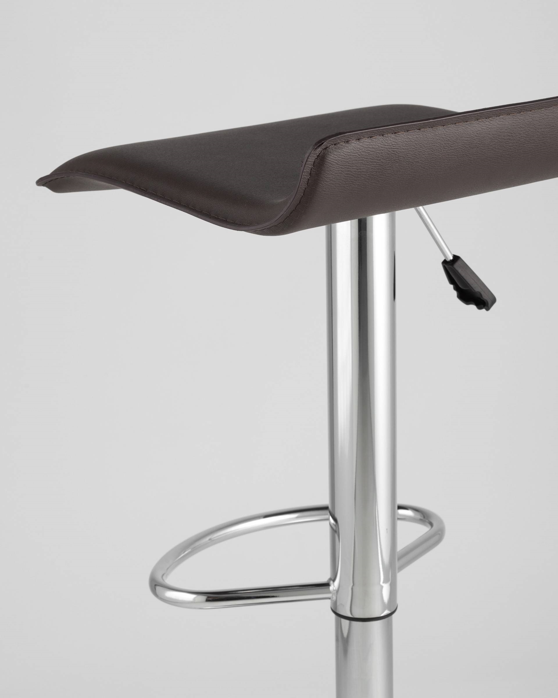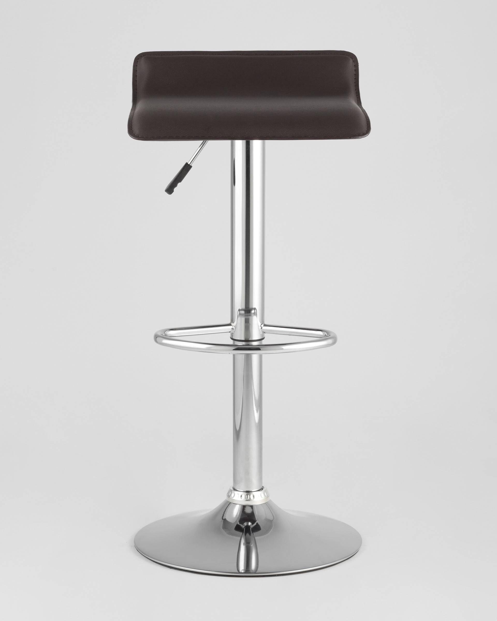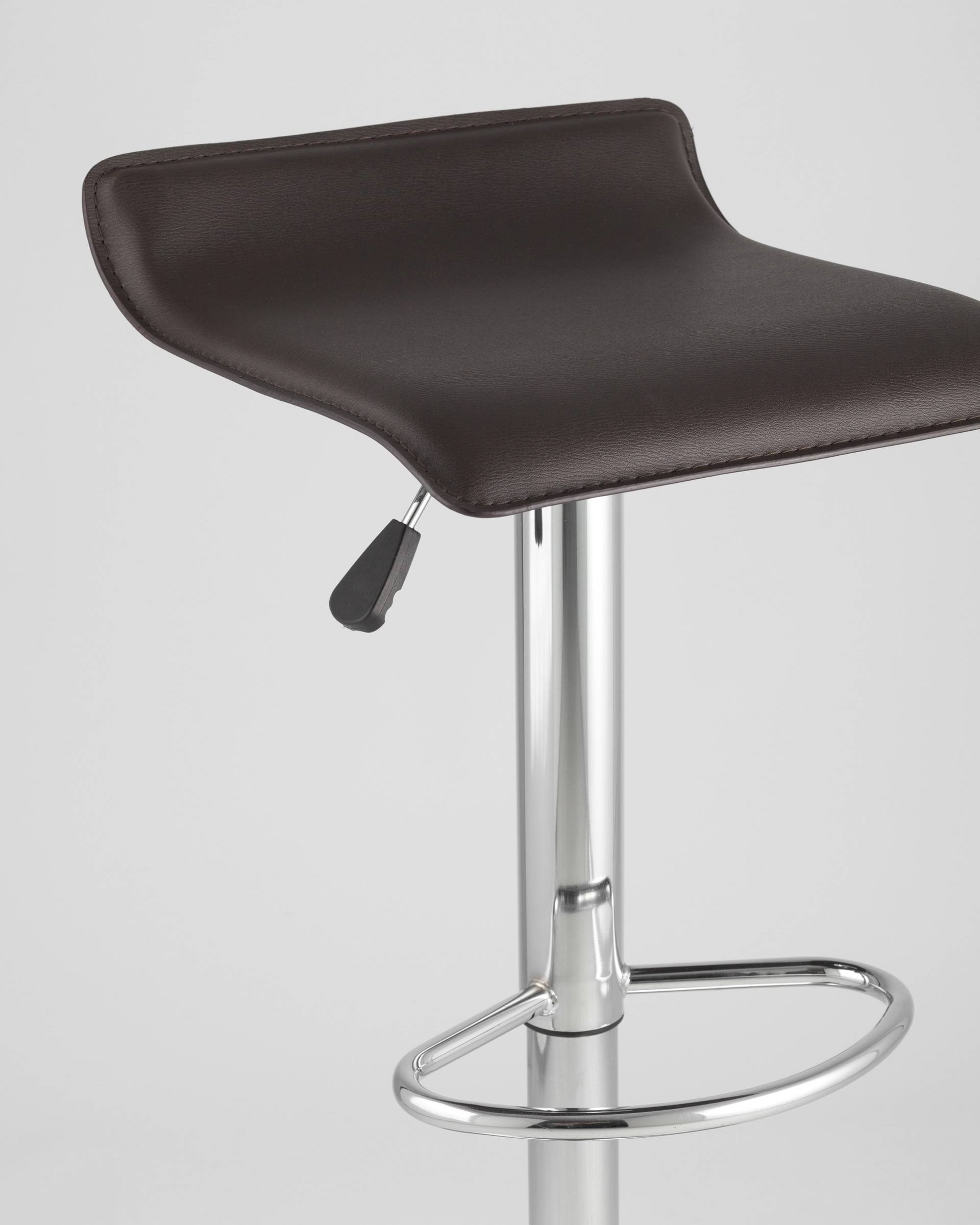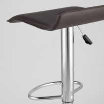 Барный стул «Хай-тек» коричневого цвета – воплощение всех достоинств одноименного стиля. Функциональная, эргономичная модель отличается оригинальным, лаконичным дизайном. Основа выполнена из хромированного металла, а сиденье необычной формы – из качественной экокожи.