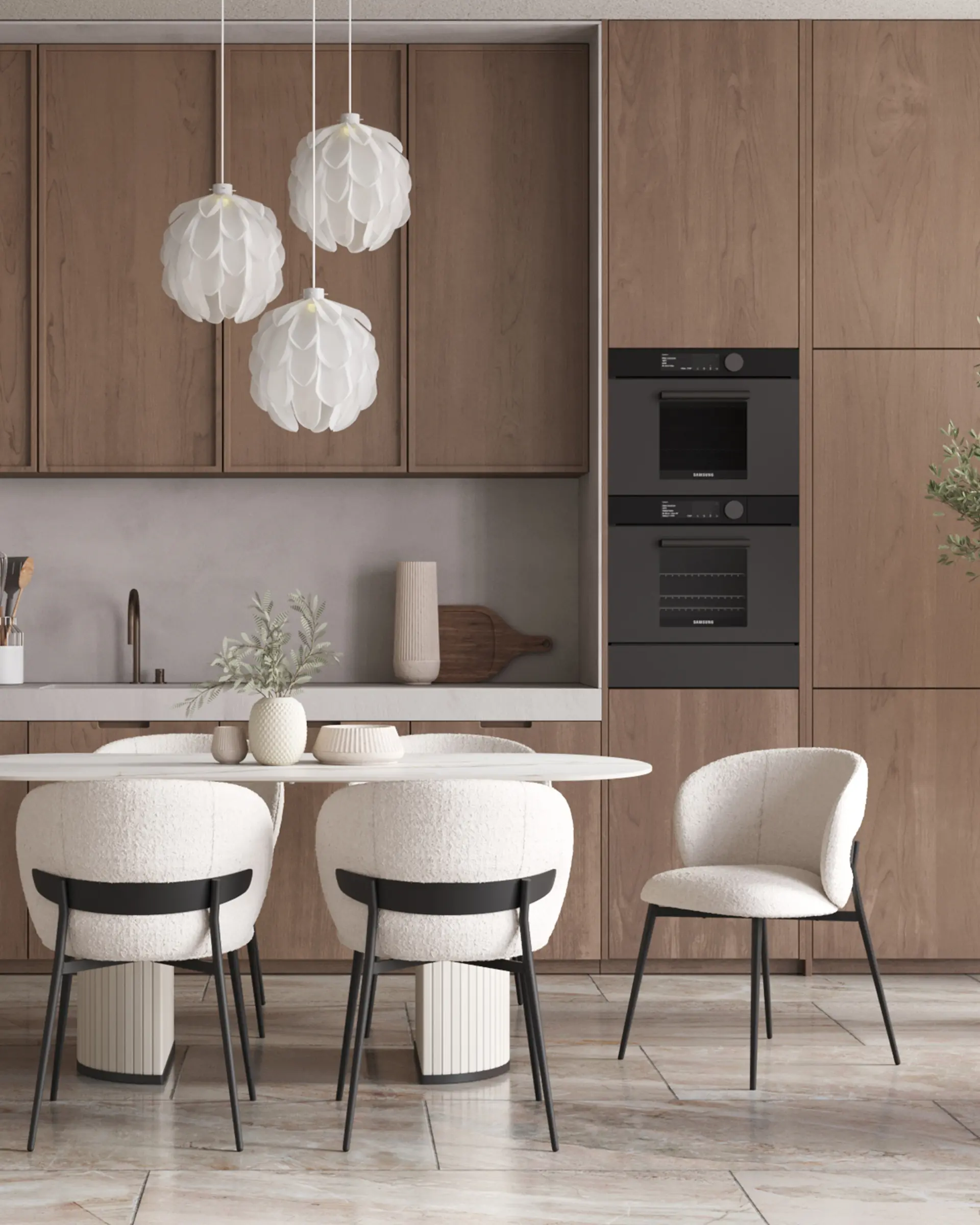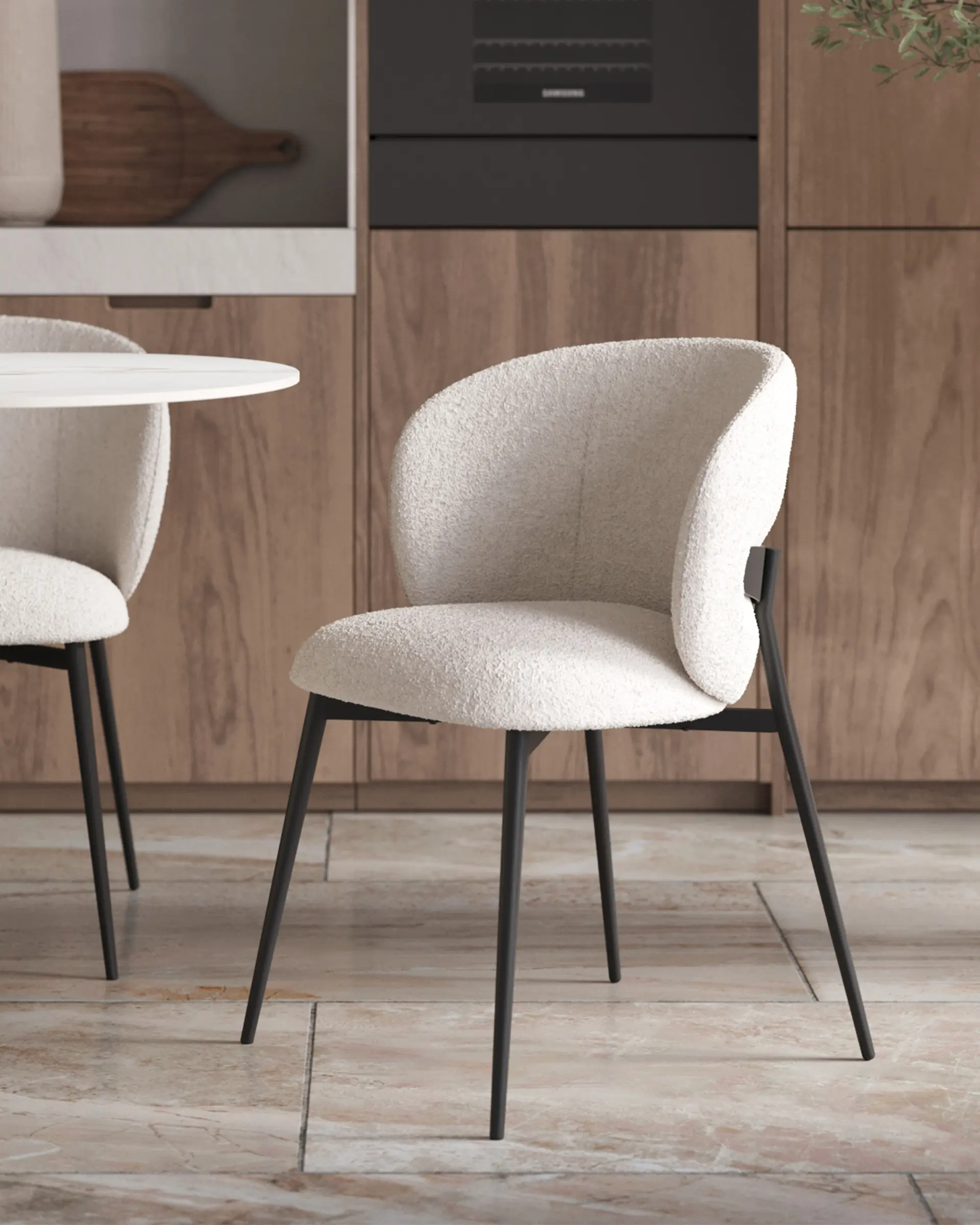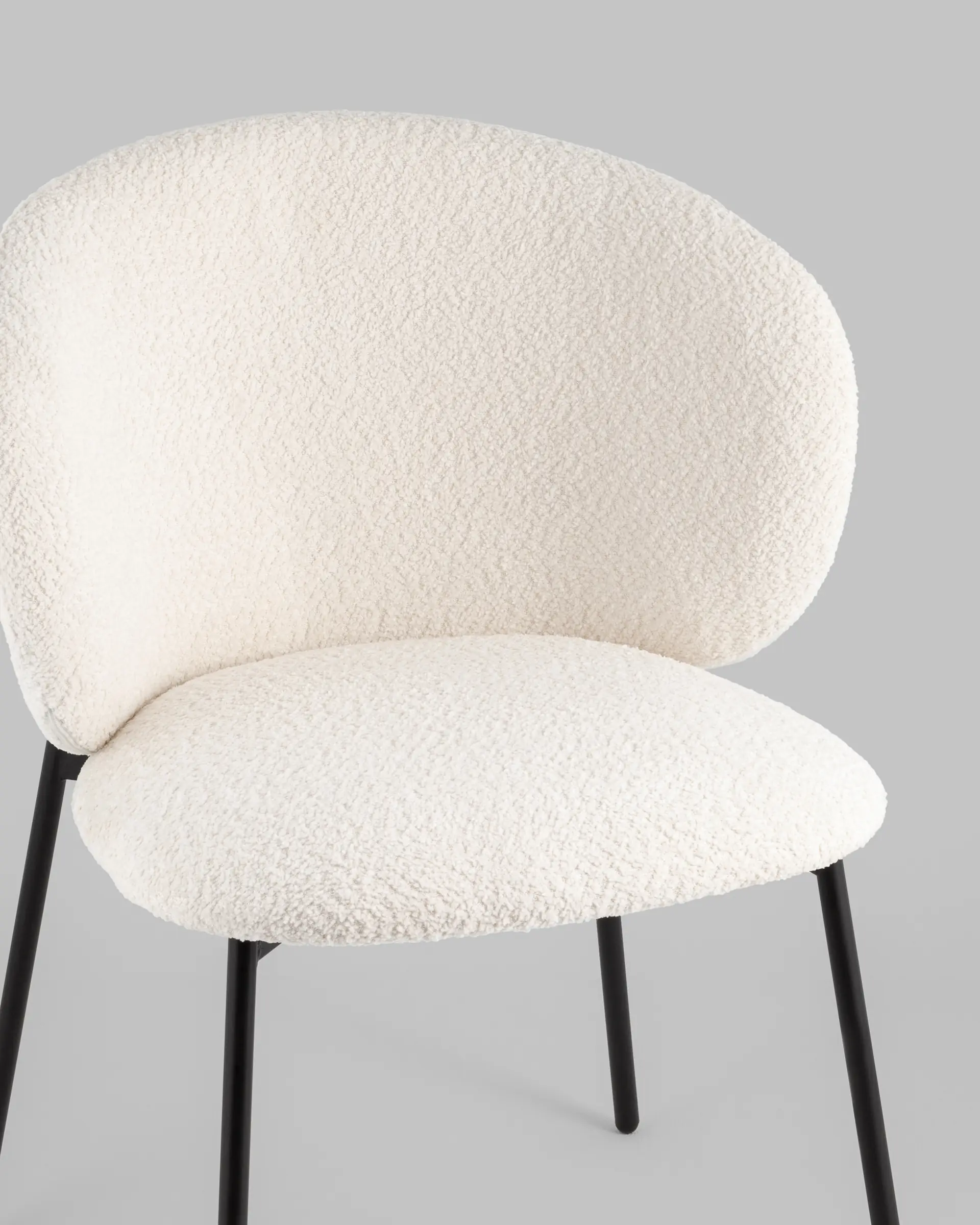 Интересное сочетание современного дизайна и вневременной мебельной классики. Обивка выполнена из мягкой и легкой ткани букле. Красивый и очень мягкий материал, который оставляет ощущение теплоты и уюта. Прочная конструкция выдерживает нагрузки до 120 кг. Полукруглая спинка и широкое сиденье обеспечат удобство при посадке. Лаконичный дизайн стула дополнит любой интерьер и будет прекрасно смотреться в комплекте с обеденным столом.